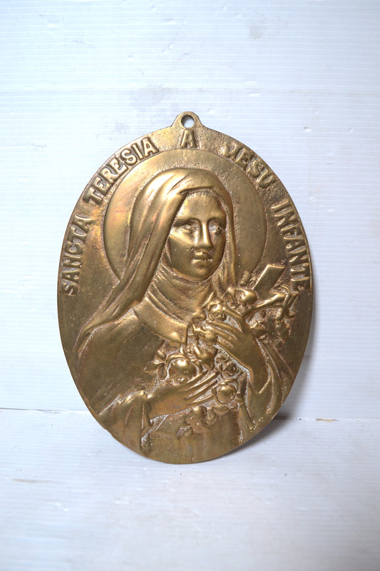 Ancienne plaque religieuse dorée Sainte-Thérèse