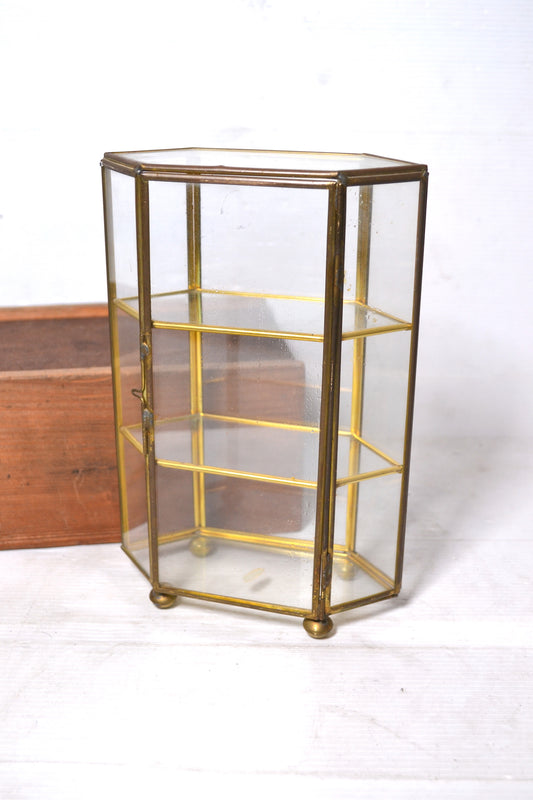 Ancienne vitrine à bijoux en verre et laiton