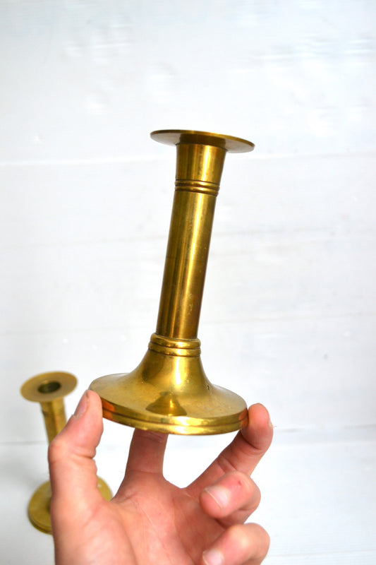 Bienvenue dans notre catégorie "Bougeoirs et Chandeliers Anciens", où l'élégance et le charme d'antan se marient pour illuminer votre intérieur d'une lueur enchanteresse. Ces objets raffinés, chinés avec passion dans des brocantes, des braderies, des vide-greniers et des associations, sont les gardiens d'une histoire fascinante et vous invitent à voyager à travers le temps. Découvrez une sélection exquise de bougeoirs dorés en laiton qui ajouteront une touche de chaleur et d'élégance à votre décoration.