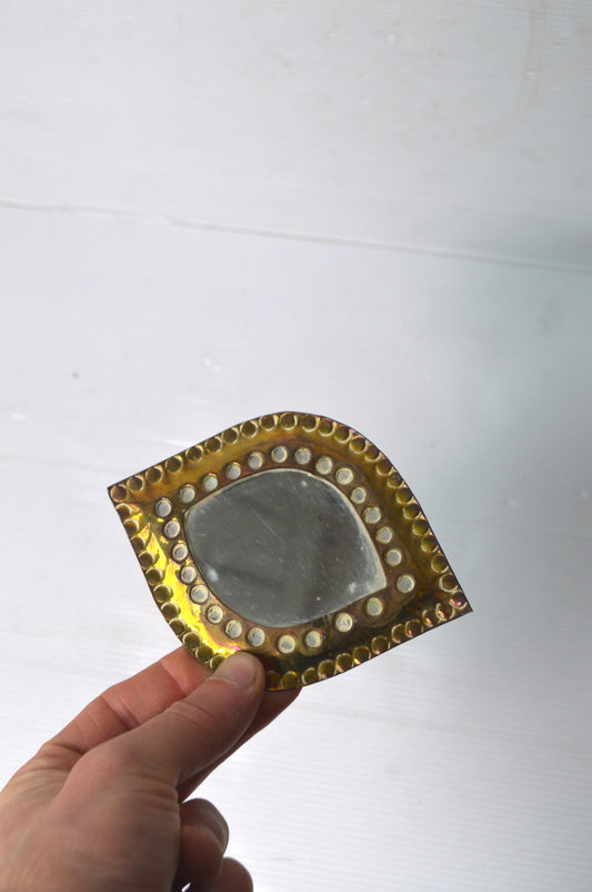 Facilement reconnaissable ces petits miroirs en laiton dorés et lumineux en forme d'œil, d'arche, de carré ou de goutte s'associent harmonieusement pour créer des nuages de miroirs pour un formidable effet décoratif sur un mur de salon, un couloir d'entrée ou dans une chambre.