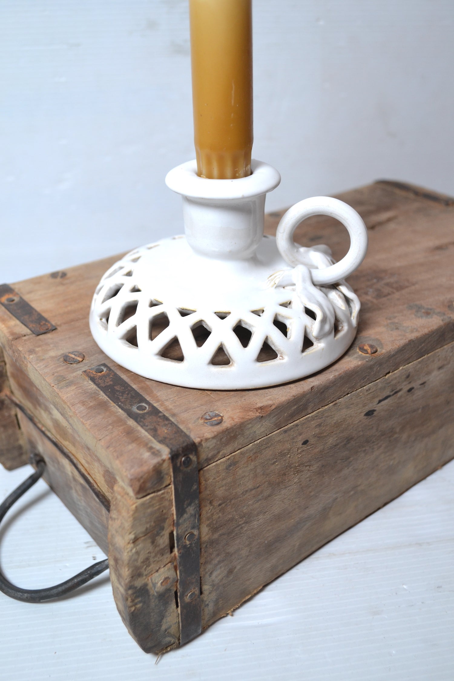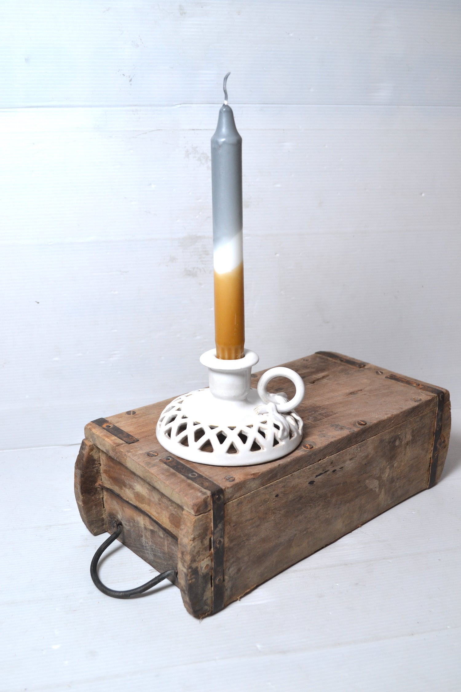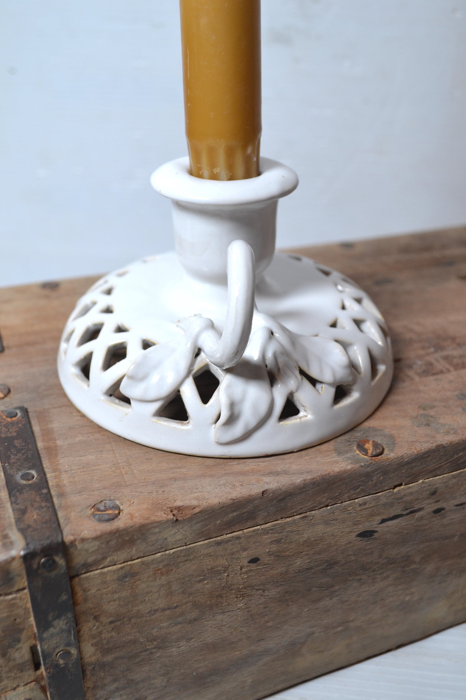 Superbe bougeoir rat de cave vintage en céramique et barbotine sculpté et peint à la main constitué d'une base ajourée et d'une anse graphique en relief. Un joli bougeoir vintage en céramique blanche idéal pour apporter une note poétique à votre décoration d'intérieur.
