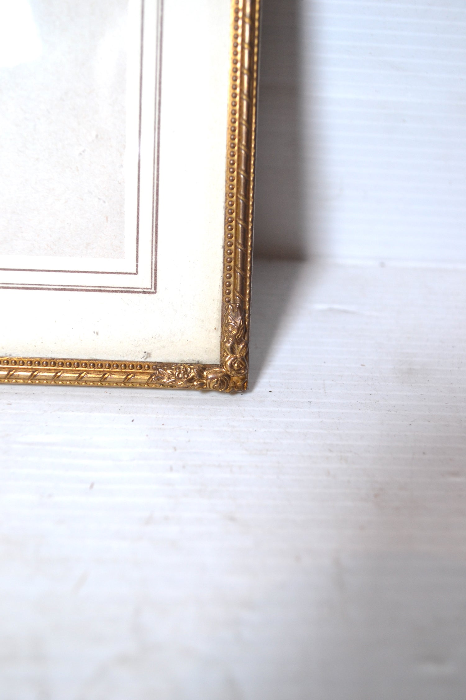 Apportez une note chic à votre décoration d'intérieur grâce à ce superbe cadre vintage doré et lumineux. Il se distingue naturellement par son élégant cadre en métal gravé de liserés orné aux quatre coins de petites fleurs en laiton en relief. On y placera une photo, un dessin ou le portrait d'un proche. Un petit cadre à poser ou à suspendre à la verticale comme à l'horizontale dans un mur de cadres d'esprit baroque, shabby chic ou cabinet de curiosités !