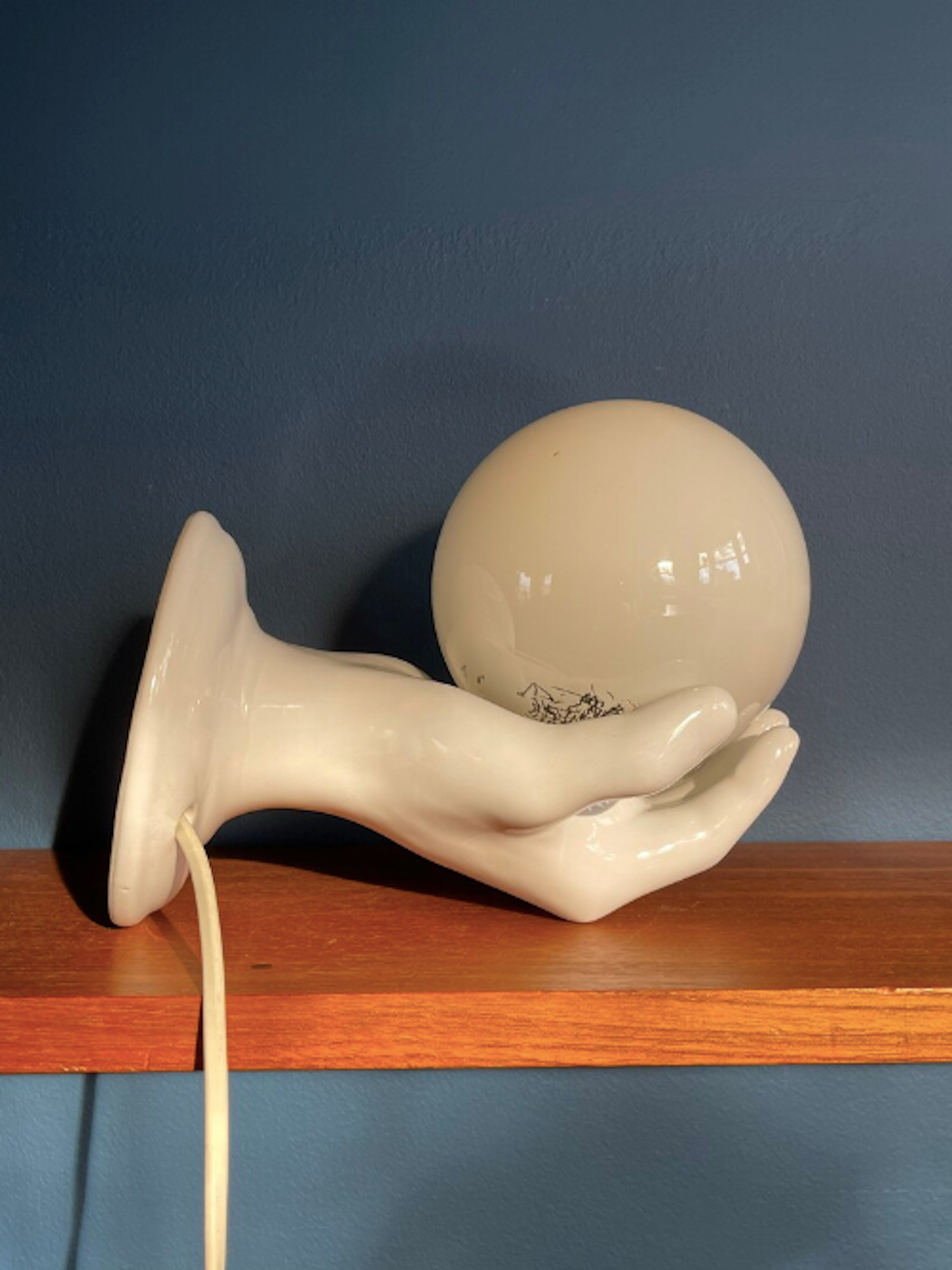 Cette surprenante applique décorative vintage à positionner aussi bien dans un couloir d'entrée que comme veilleuse au dessus d'une table de chevet dans une chambre. Une jolie main décorative qui trouverait également toute sa place dans un coin cabinet de curiosités en association avec des coraux ou des papillons naturalisés !