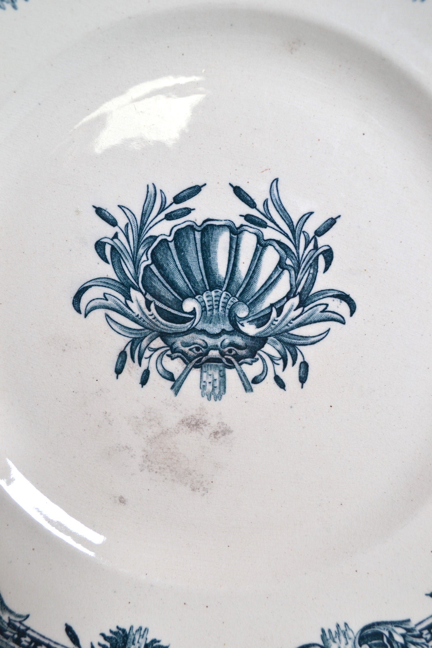 Apportez une touche d’élégance et de charme vintage à votre table avec cette assiette plate ancienne en céramique Terre de Fer. Son motif raffiné de roseaux et de coquillages sur le pourtour en fait un objet décoratif unique, parfait pour les amateurs de vaisselle ancienne et décoration de table vintage.