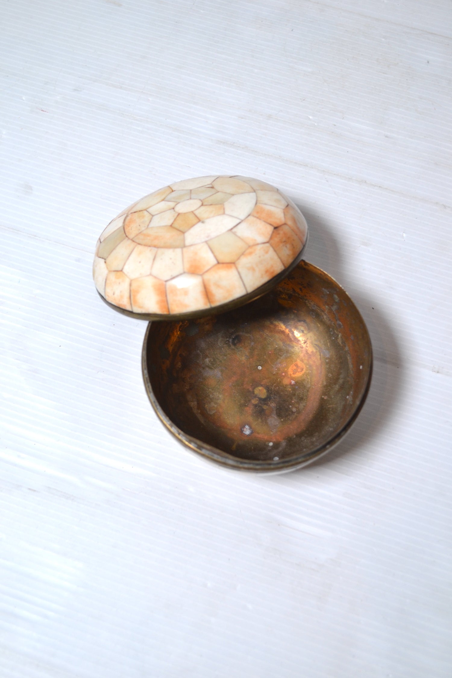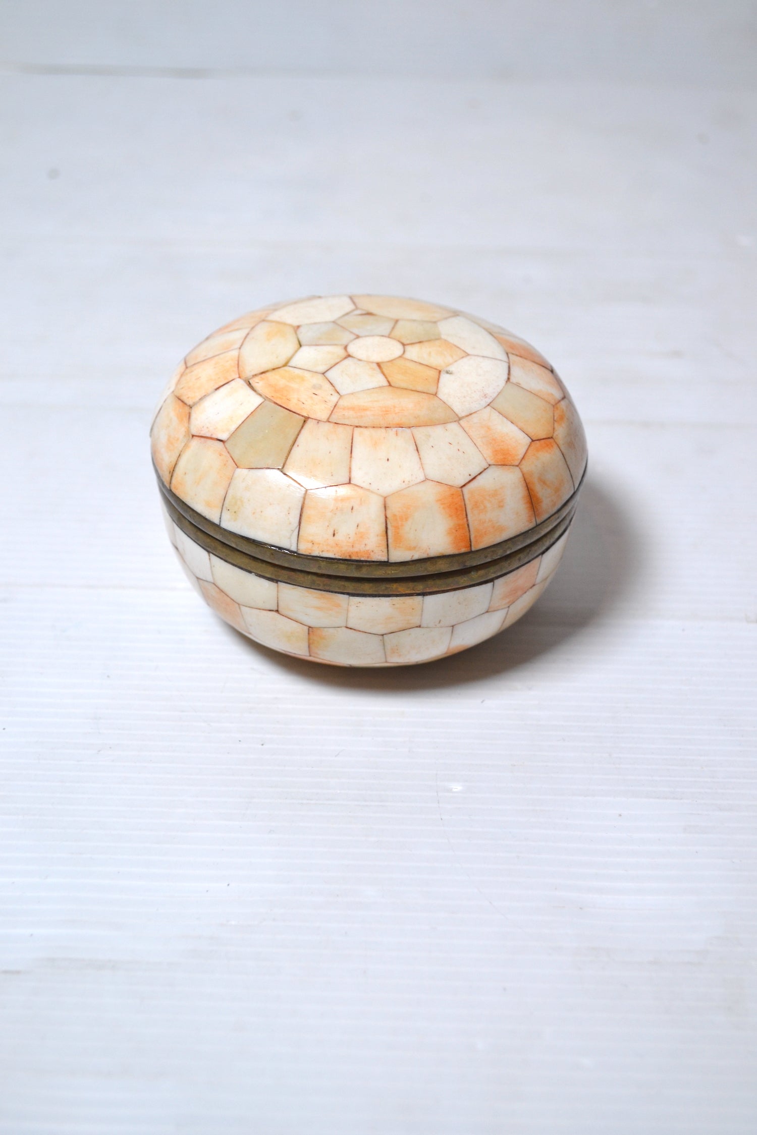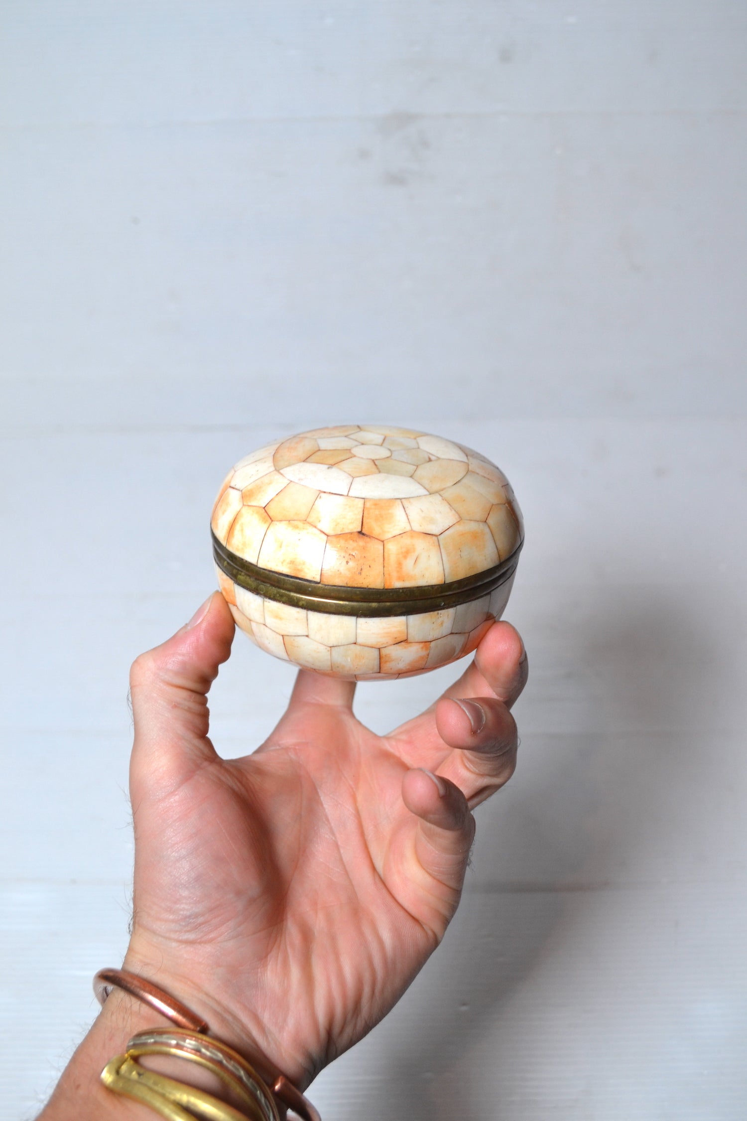 Très jolie boîte à bijoux orientale en os de chameau et laiton