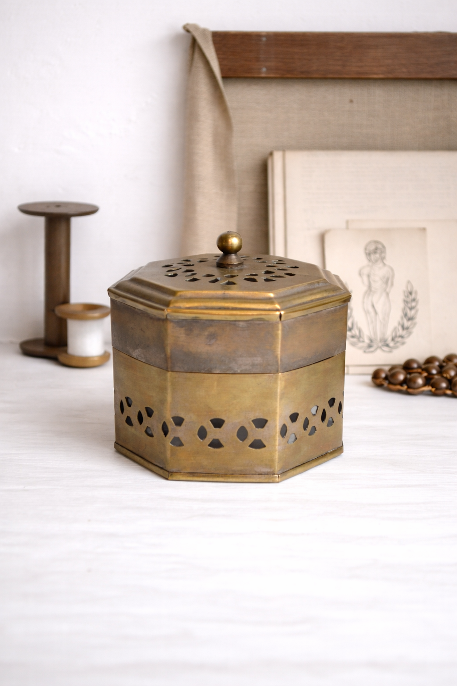 Jolie petite boîte vintage en cuivre jaune. Une élégante boîte dorée et lumineuse qu'on utilisera comme boîte à bijoux ou comme objet décoratif en accumulation avec d'autres boîtes sur un rebord de fenêtre, sur une tablette, un buffet parisien ou un coin bibliothèque.