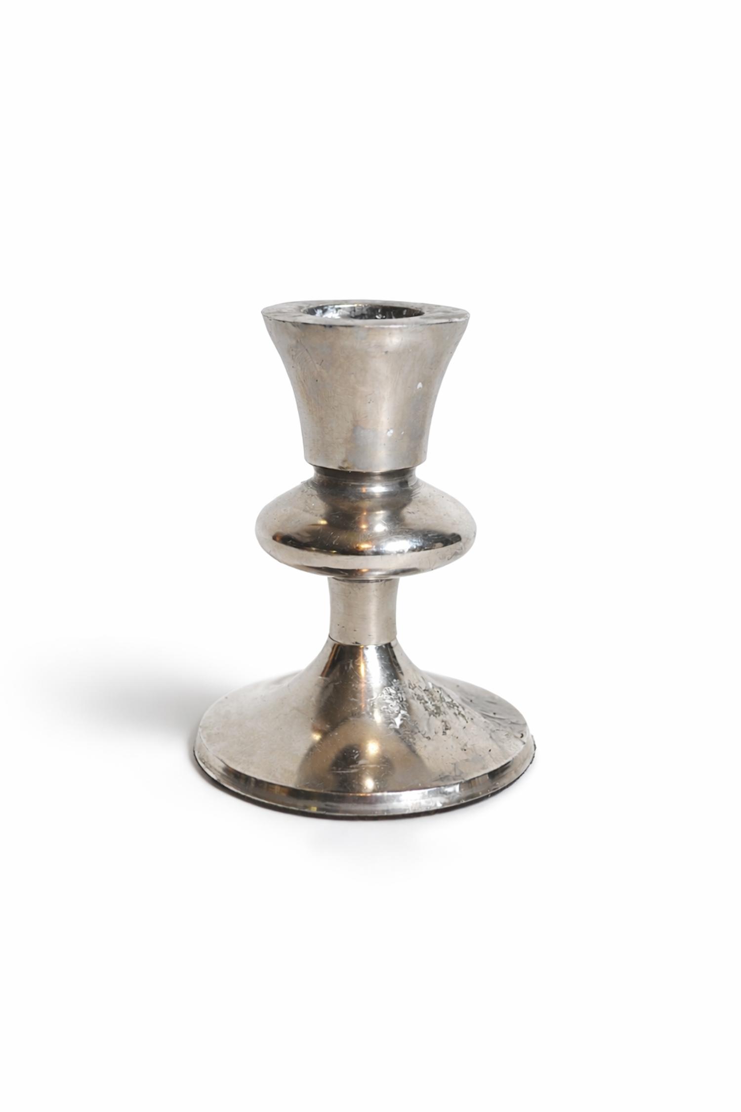 Joli bougeoir en métal argenté idéal en accumulation avec d'autres bougeoirs et chandeliers sur un buffet parisien ou un tablier de cheminé