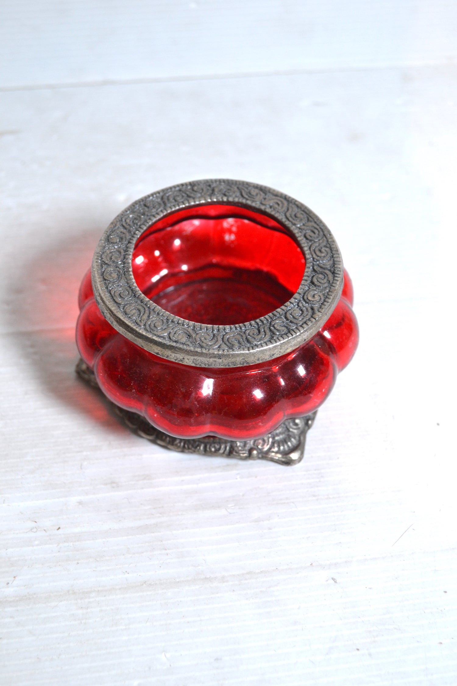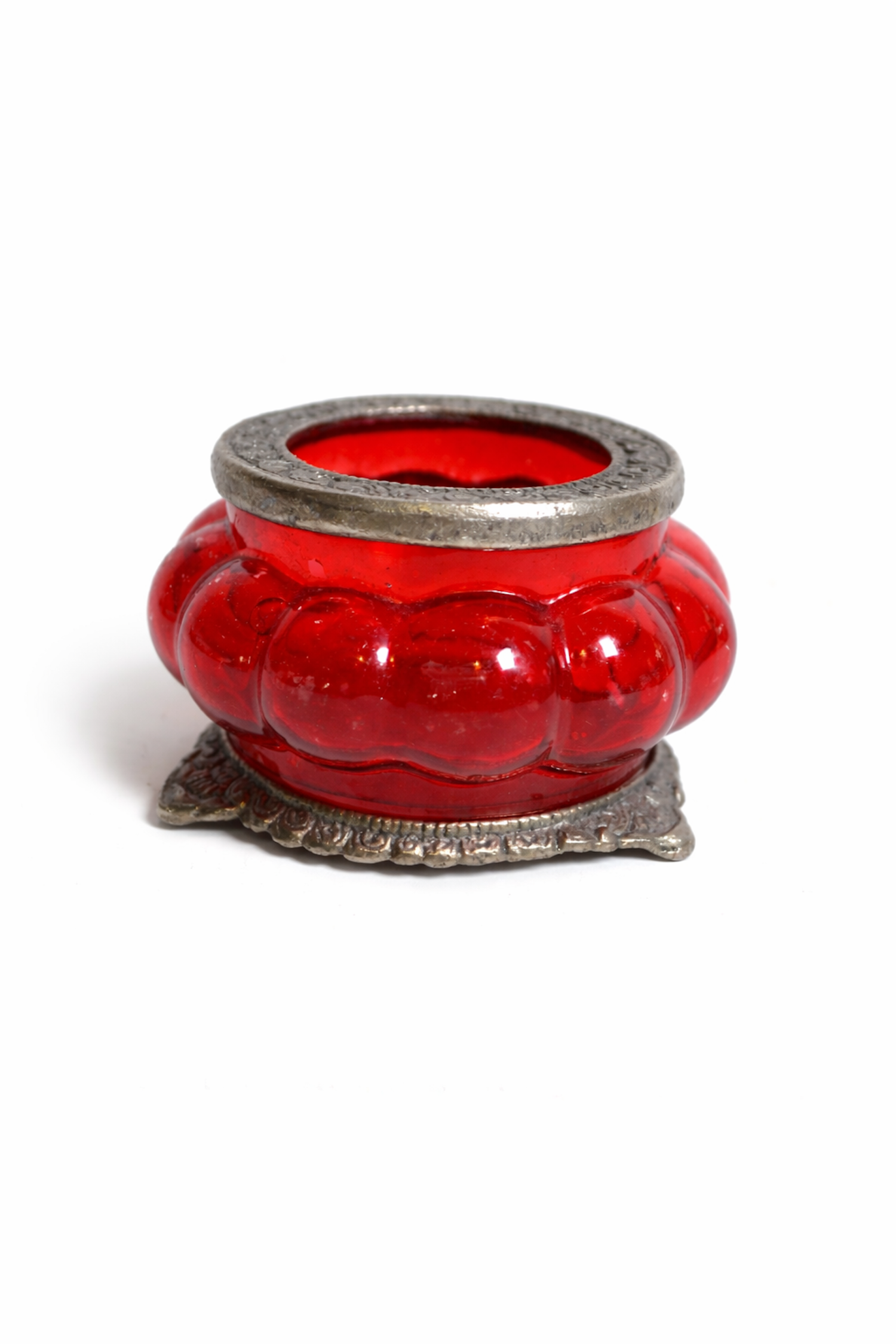 Joli photophore en verre rouge et métal argenté de fabrication indienne idéal pour apporter une note feutrée et intimiste dans un salon d'esprit bohème !