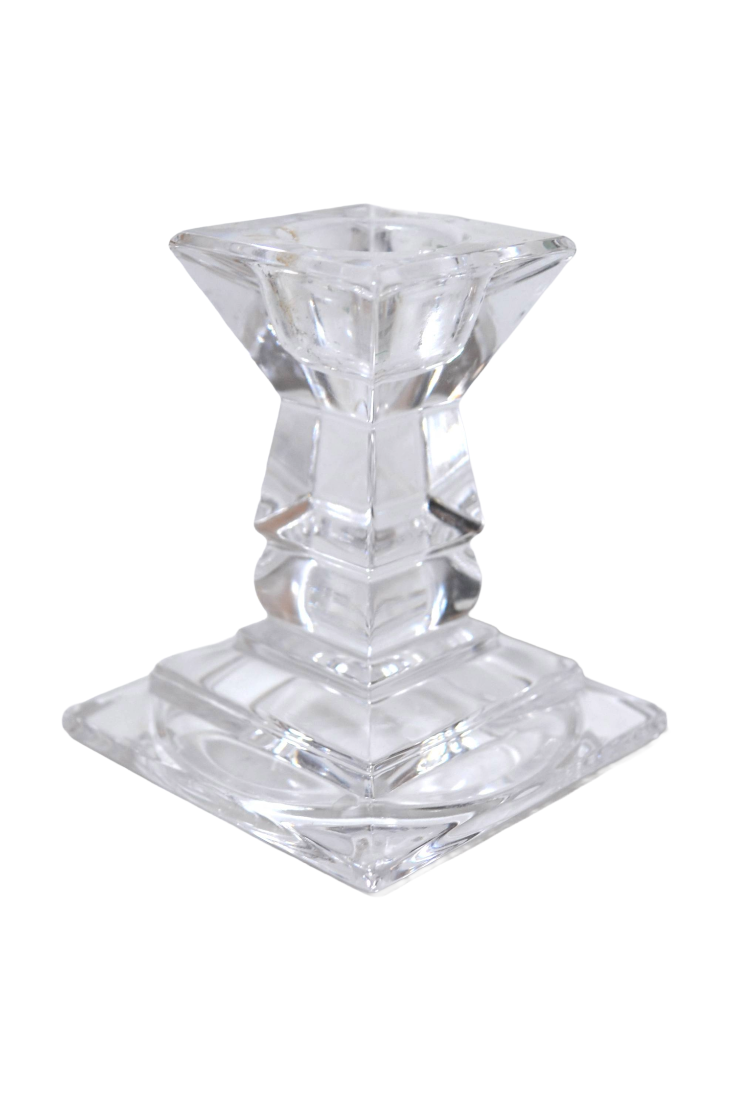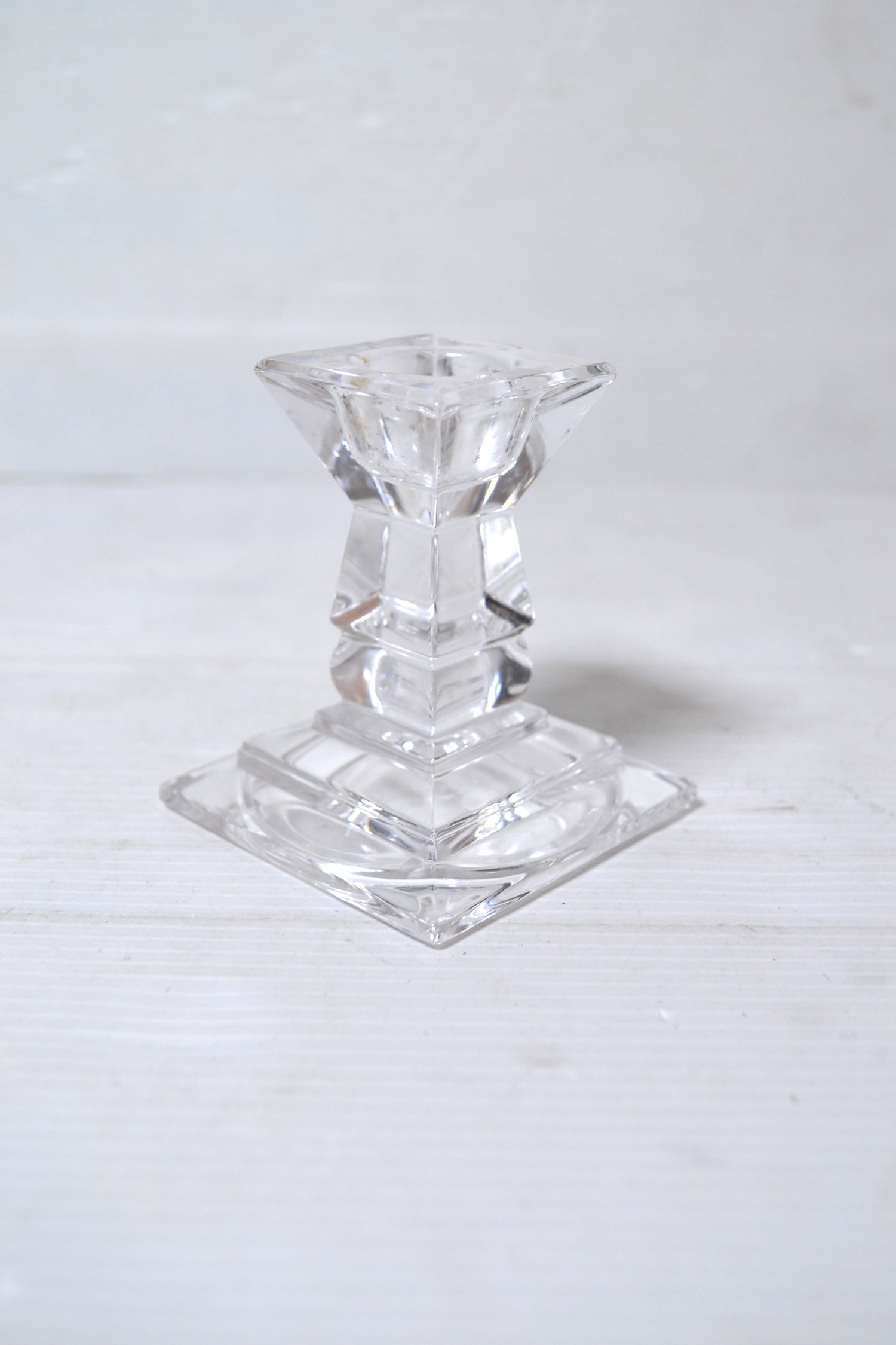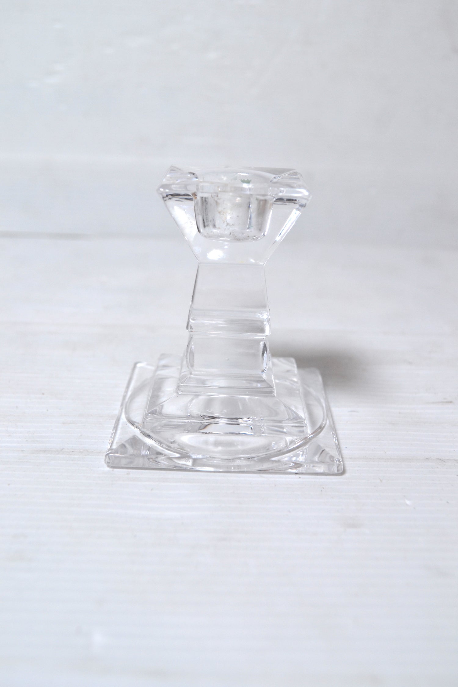 Ce superbe bougeoir en verre se distingue par son côté transparent comme par ses belles formes géométriques. Un bougeoir à placer au centre d'une table basse, sur un buffet parisien ou en accumulation avec d'autres bougeoirs et chandeliers au centre d'une grande table en bois