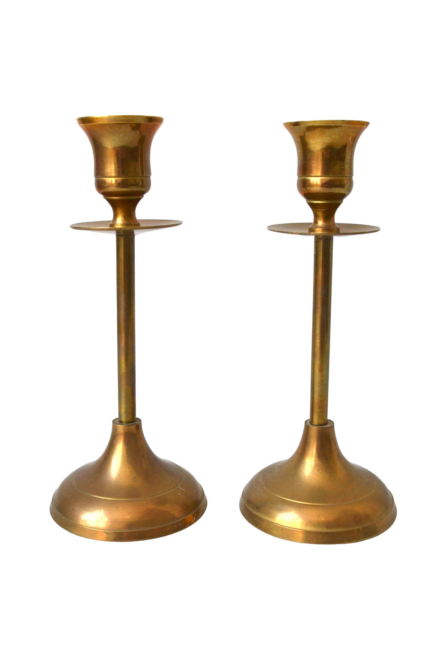 Ce joli duo de bougeoirs se démarque par sa couleur dorée comme par son élégant design minimaliste. Une paire de bougeoirs rétro à placer au centre d'une table basse, sur un buffet parisien ou en accumulation avec d'autres bougeoirs et chandeliers dorés au centre d'une grande table en bois