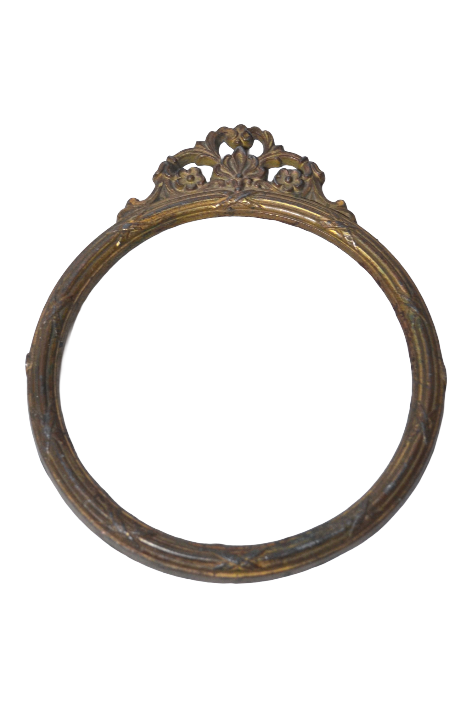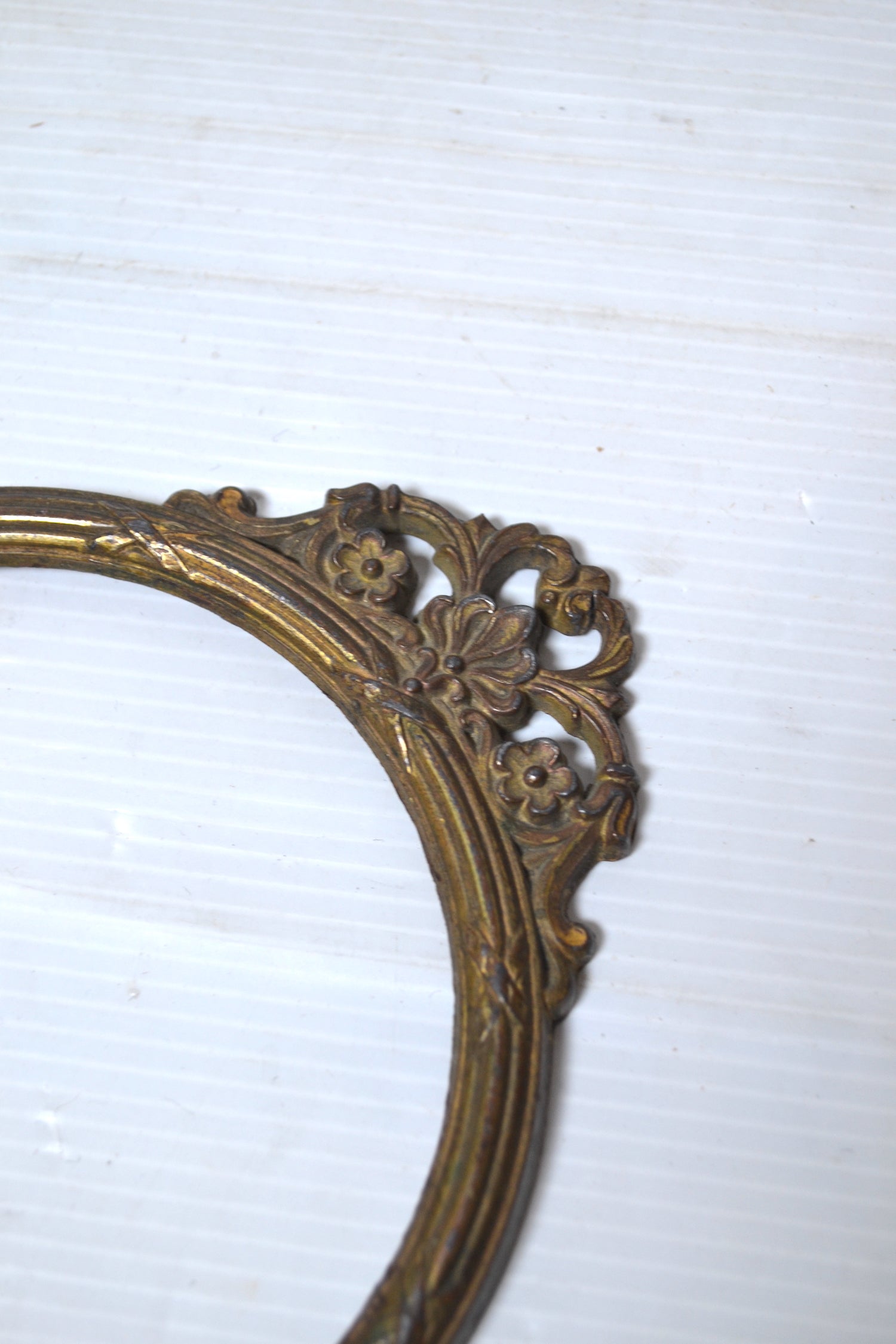 Ce joli cadre ancien porte de nombreuses traces d'usure mais cela participe à son charme. Un joli cadre patiné par le temps qui se démarque naturellement par son élégant ornement en forme de fleurs et de nœuds.