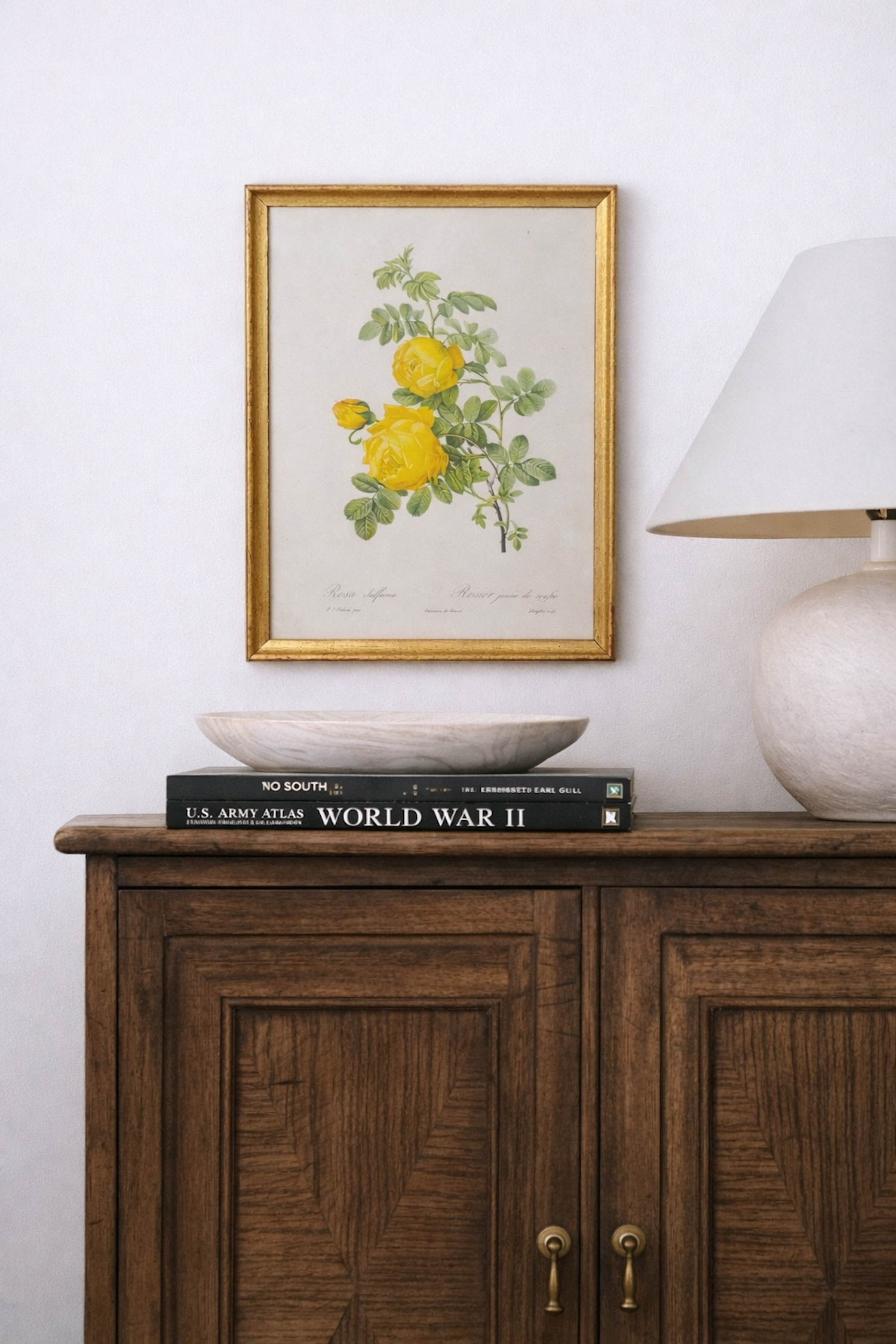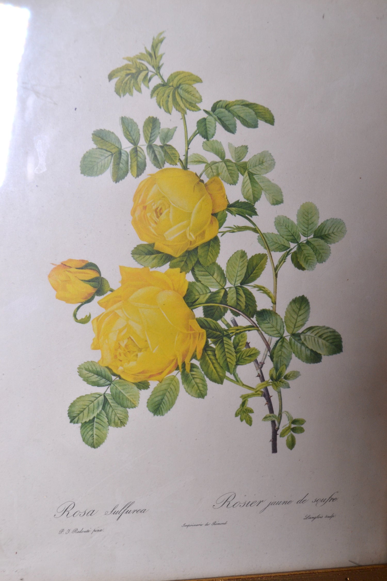 Très belle lithographie botanique d'après P J Redouté sous cadre en bois et vitre en verre. Un élégant cadre botanique à suspendre en isolé au dessus d'un buffet ou dans une accumulation murale de cadres et de tableaux anciens.