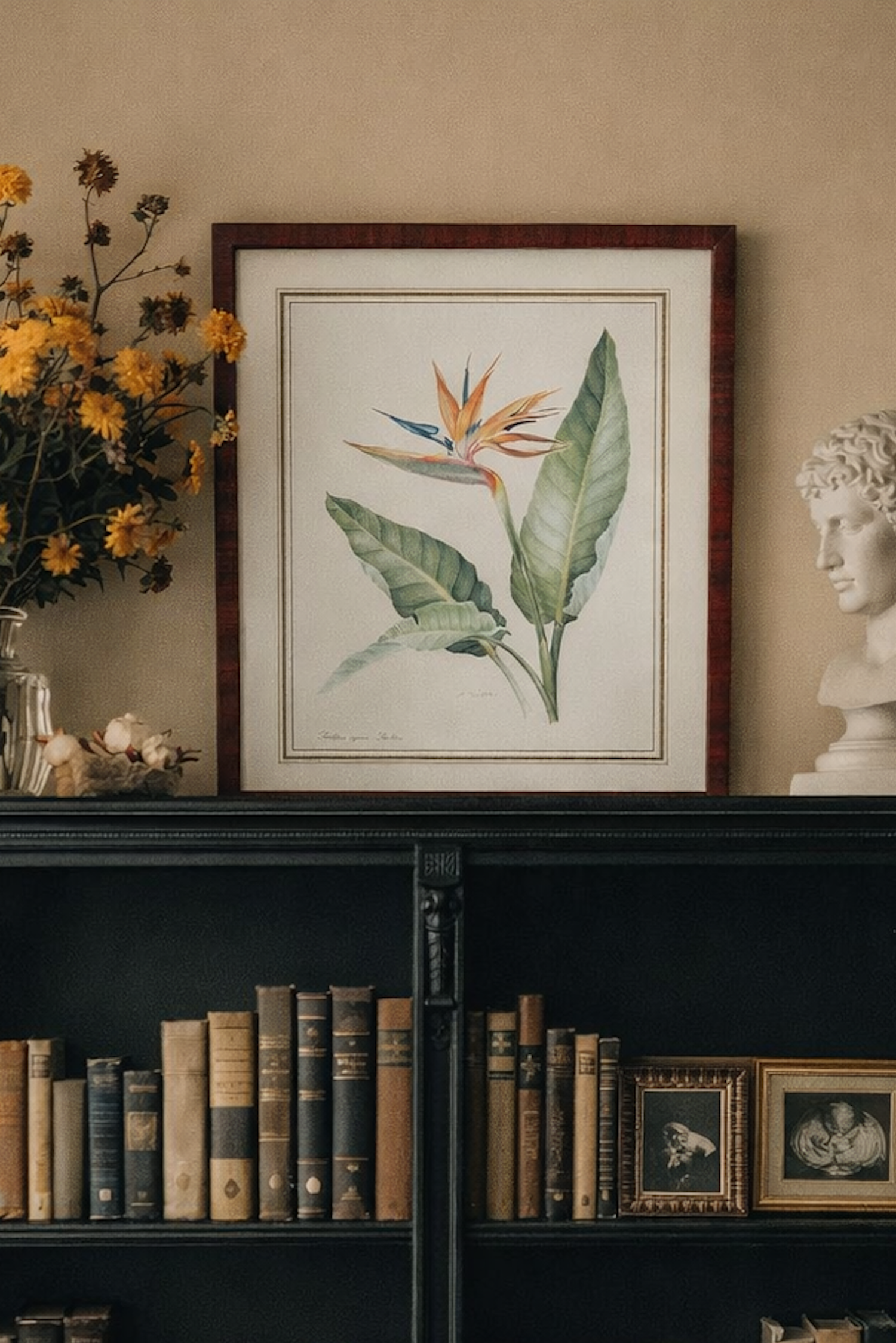 Superbe affiche botanique sur l'oiseau du paradis placée sous verre. Un très joli cadre botanique tout trouvé pour une décoration d'esprit bohème ou rustique dans une cuisine comme dans un salon. On pourra le poser en butée contre un mur ou le suspendre dans une accumulation murale de cadres et d'affiches anciennes !
