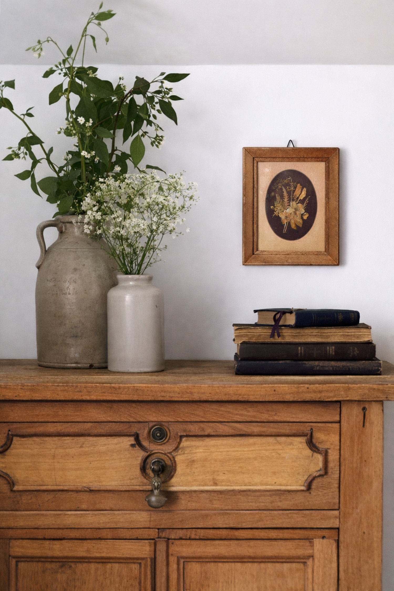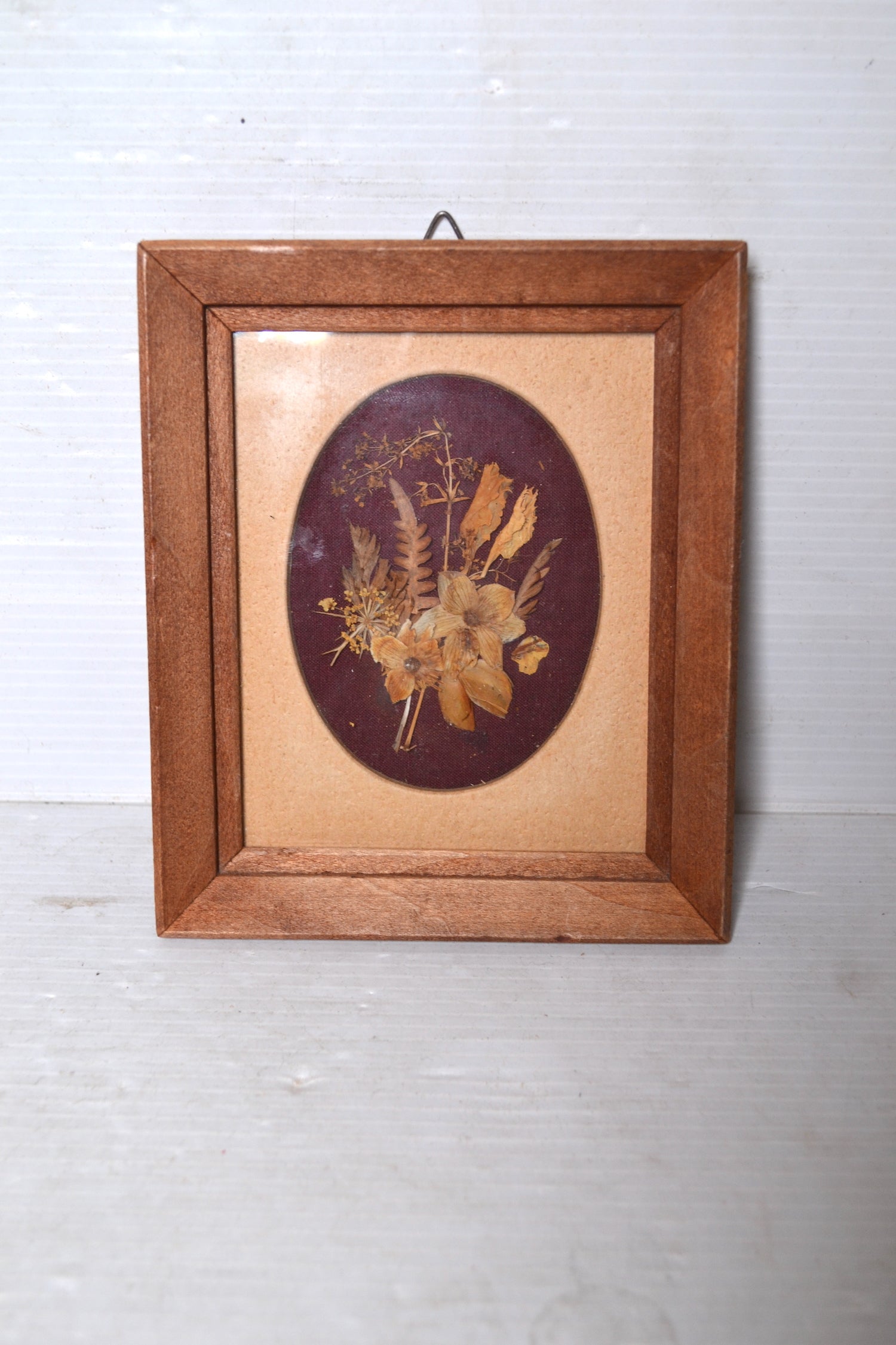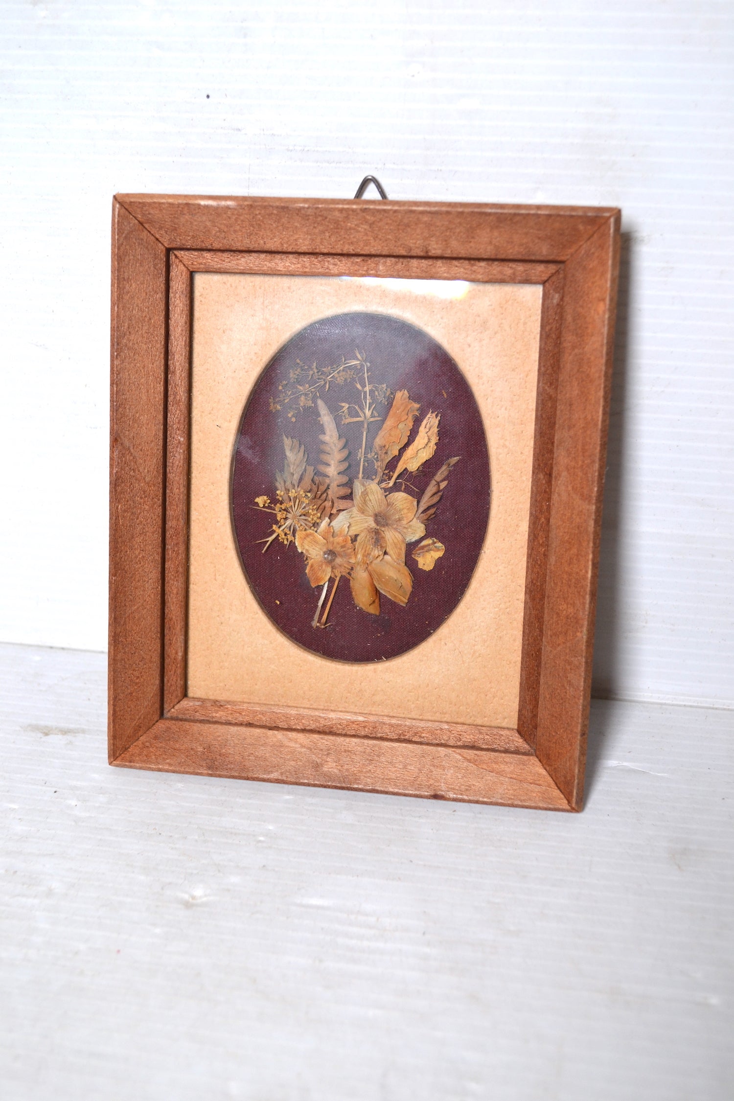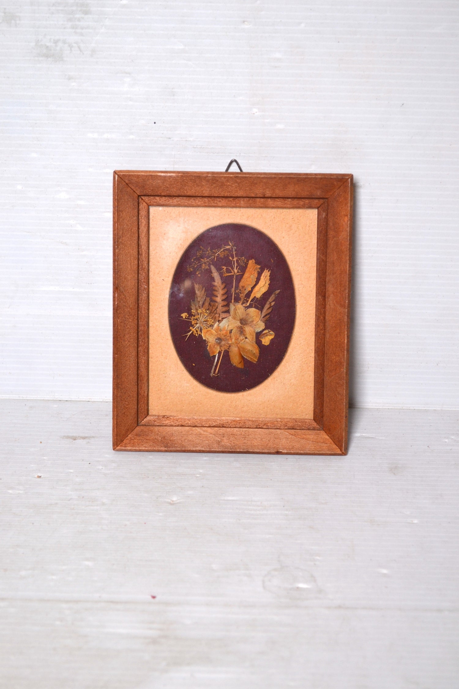 Ravissant petit cadre vintage en bois avec vitre en verre renfermant une composition de fleurs séchées sur fond bordeaux. Un très joli petit cadre de fabrication artisanale fabriqué en Pologne tout trouvé pour une accumulation murale de cadres et de tableaux. Un petit cadre naturel qui s'intègrera parfaitement dans une décoration d'esprit bohème !