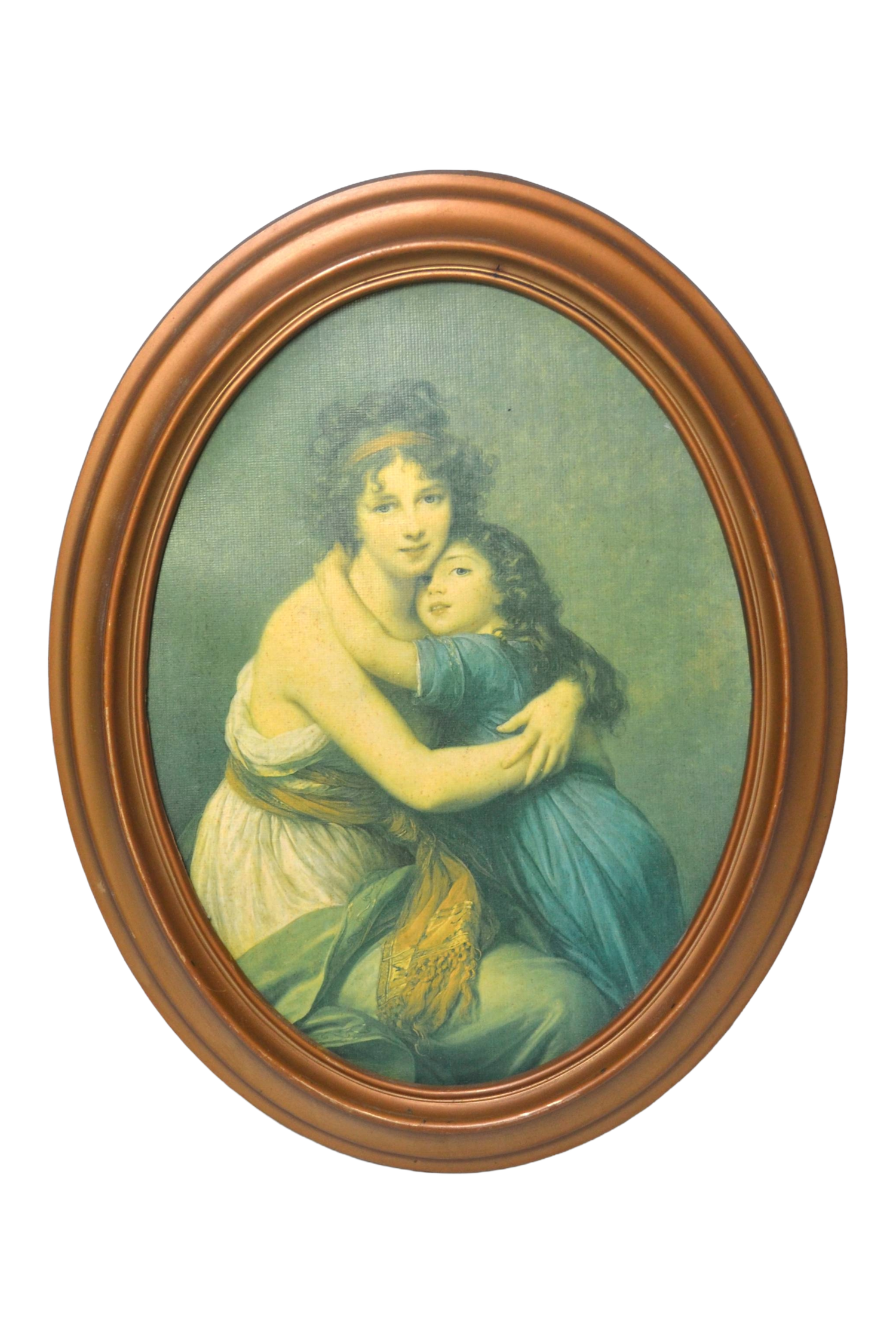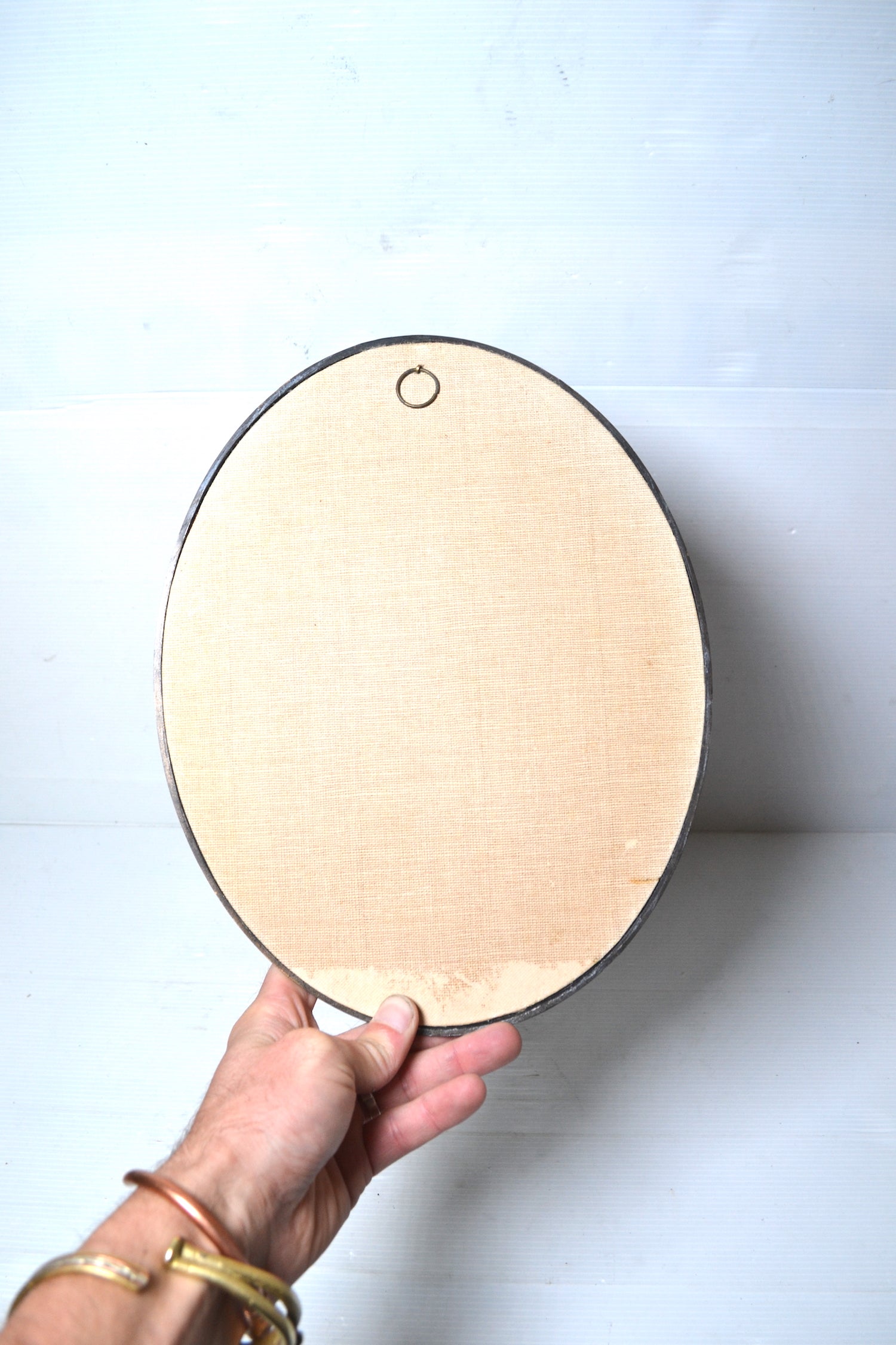 Ce joli cadre vintage se distingue par sa belle forme ovale et son élégante couleur dorée.