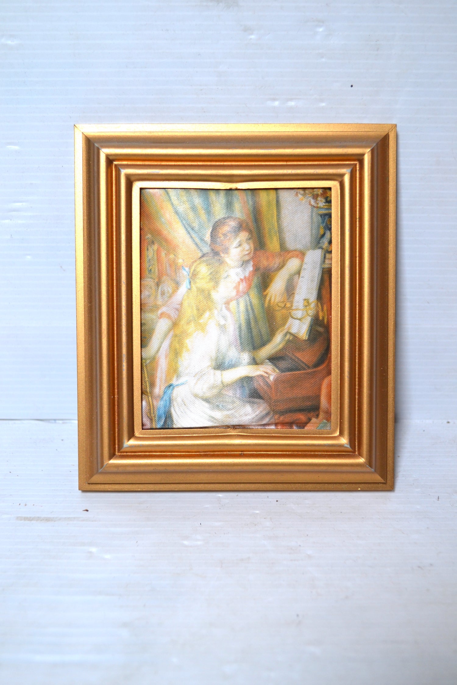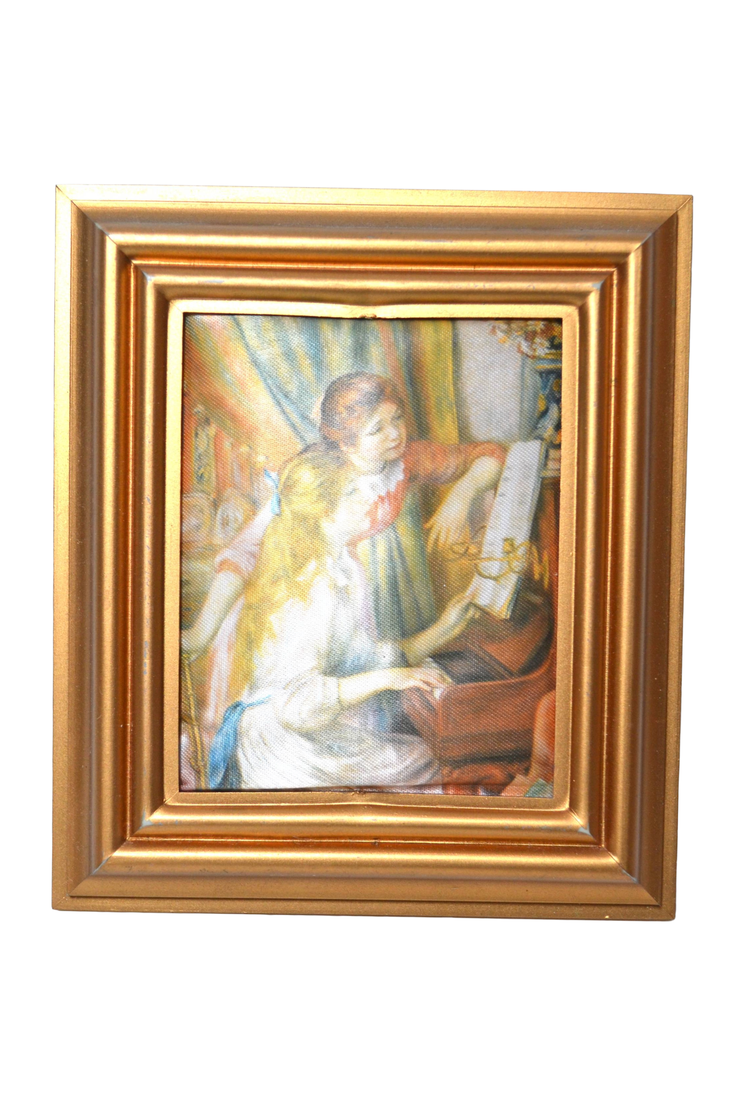 Joli petit cadre vintage de format rectangulaire renfermant une peinture sur soie. Un joli cadre qu'on conservera ainsi ou qu'on videra afin d'y encadrer une photo, un portrait ou un dessin ! Il pourra dès lors se suspendre à l'horizontale comme à la verticale !