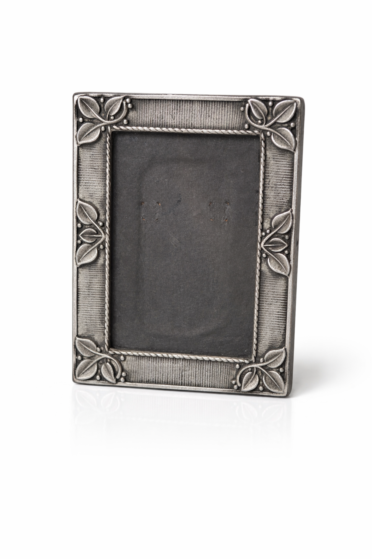 Ce joli petit cadre miniature se distingue aussi bien par sa taille réduite que par sa belle couleur argentée ou son élégant motif en forme de feuilles végétales. On l'utilisera pour encadrer une photo ou un portrait. Il se suspendra facilement dans un mur de cadres hétérogènes