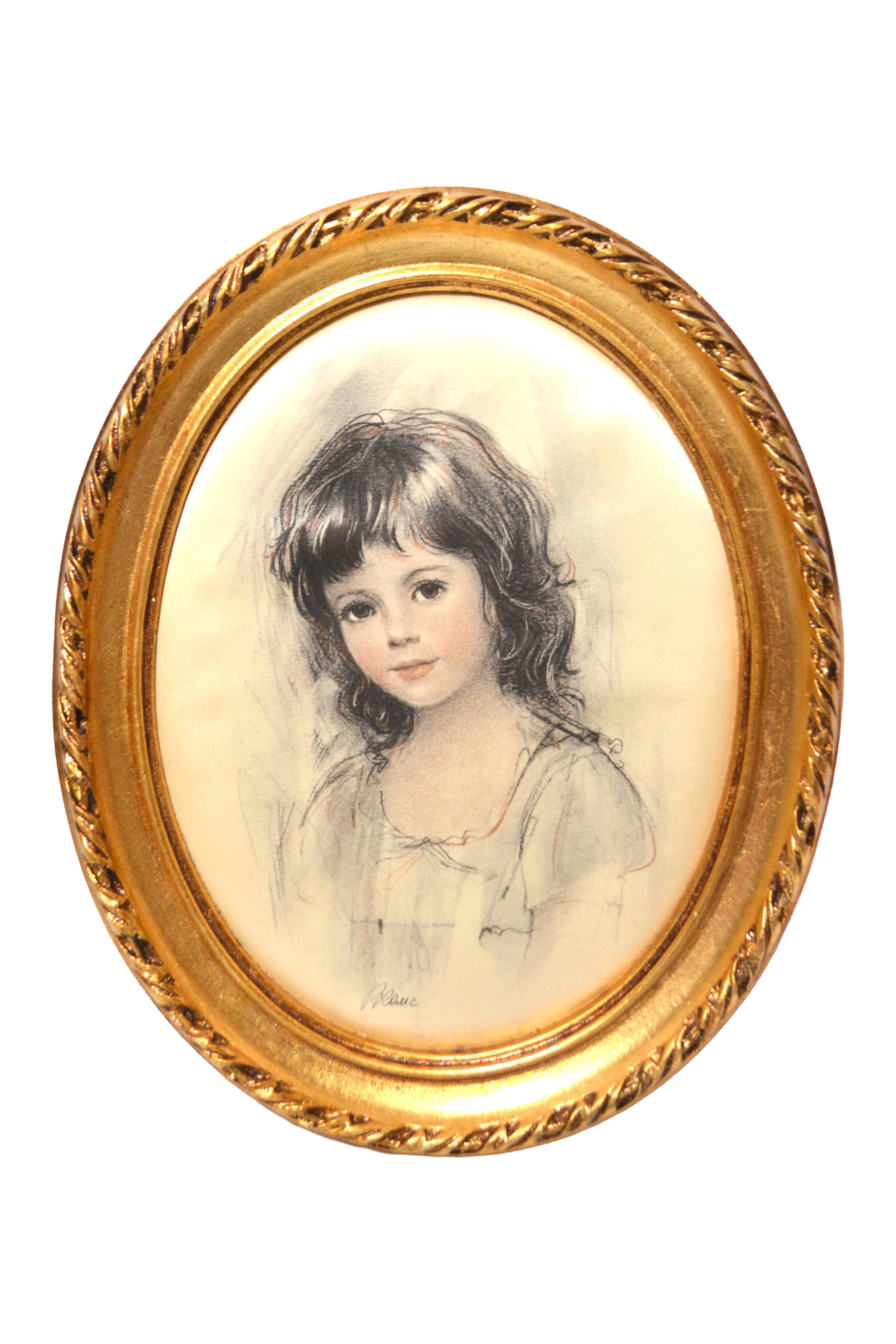 Ce joli cadre vintage se distingue par sa belle forme ovale, son cadre en relief et son élégante peinture sur soie centrale.