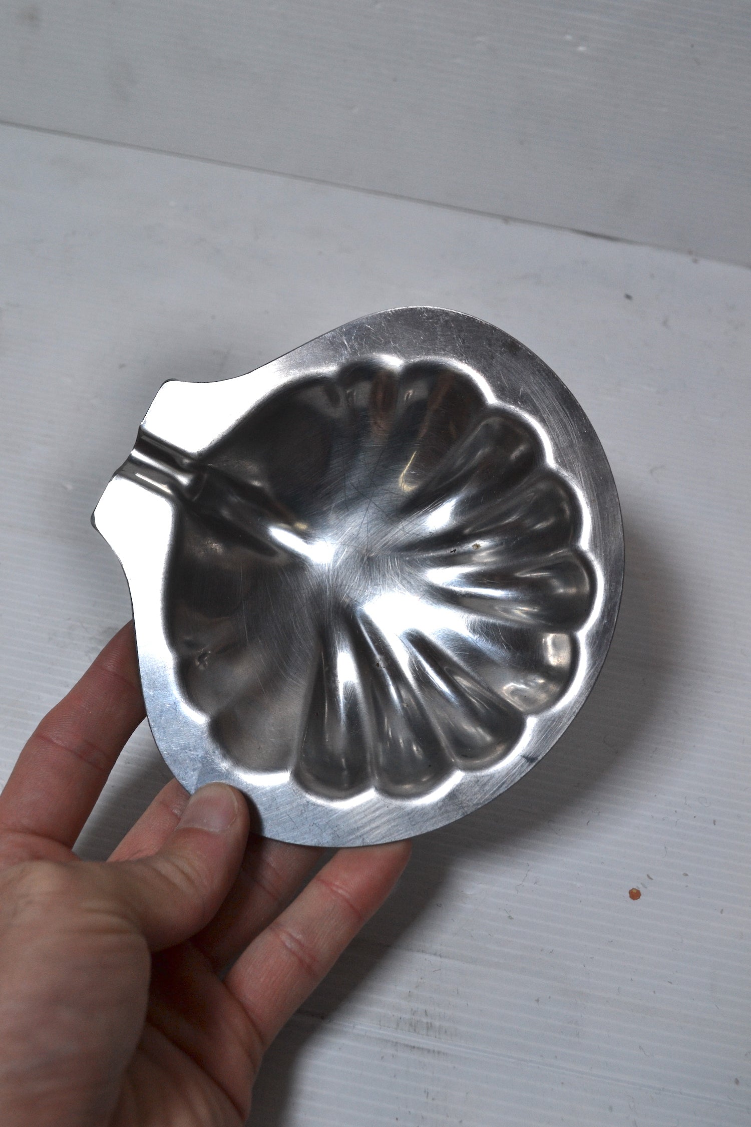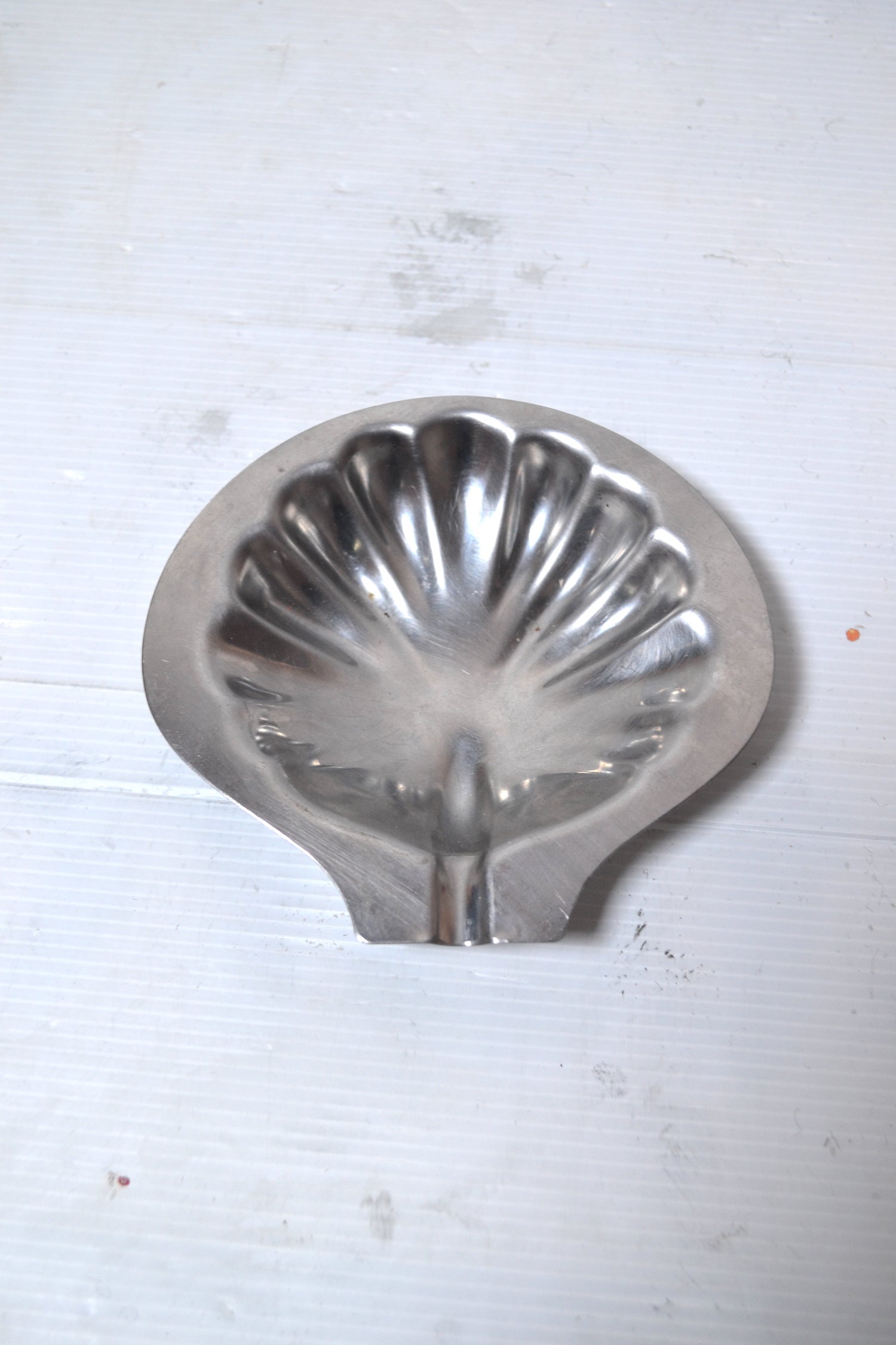 Ce joli cendrier vintage en forme de coquille Saint-Jacques se distingue par sa belle couleur argentée comme par son modèle très graphique.