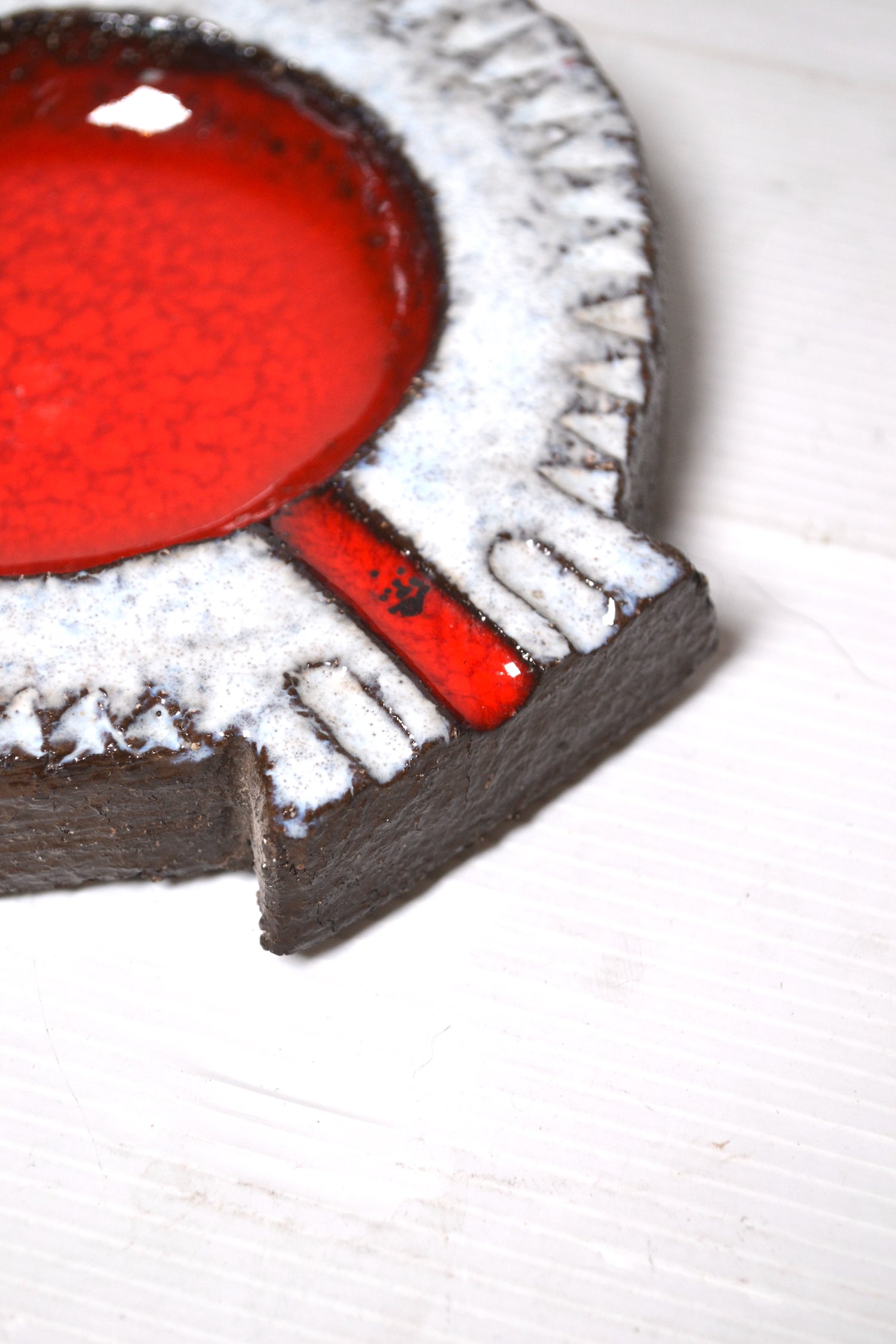 Magnifique cendrier zoomorphe en forme de poisson de style Fat Lava fabriqué en Allemagne dans les années 50s à 70s. Un superbe cendrier vintage ultra design aux formes géométriques et aux coloris contrastés.