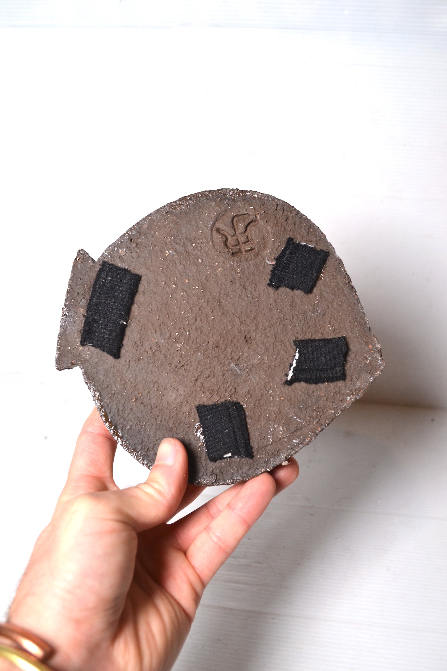 Cet incroyable cendrier vintage en céramique est une véritable pépite décorative et une petite œuvre d'art datant des années 50s à 70s. Ce cendrier ancien se distingue sur plusieurs points. Son aspect zoomorphe en forme de poisson plat très graphique et design présente des nageoires gravées et des yeux en relief. Ses couleurs vives en font un objet décoratif à la bel présence.