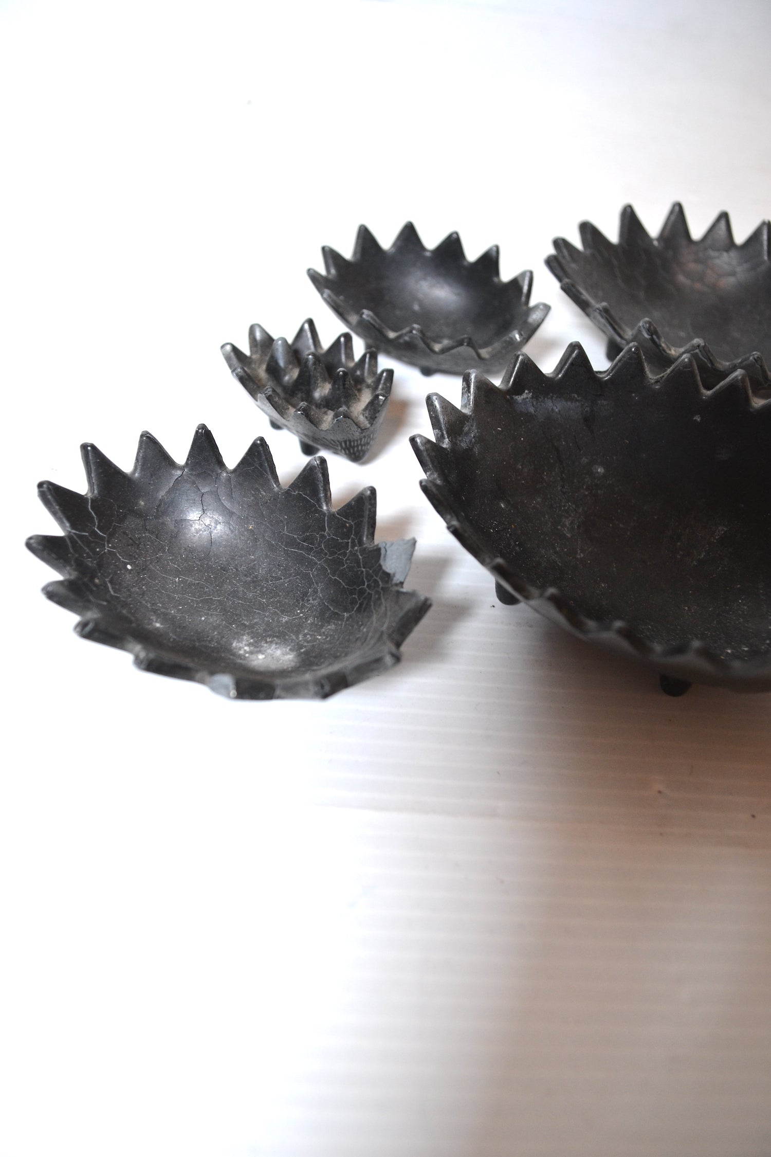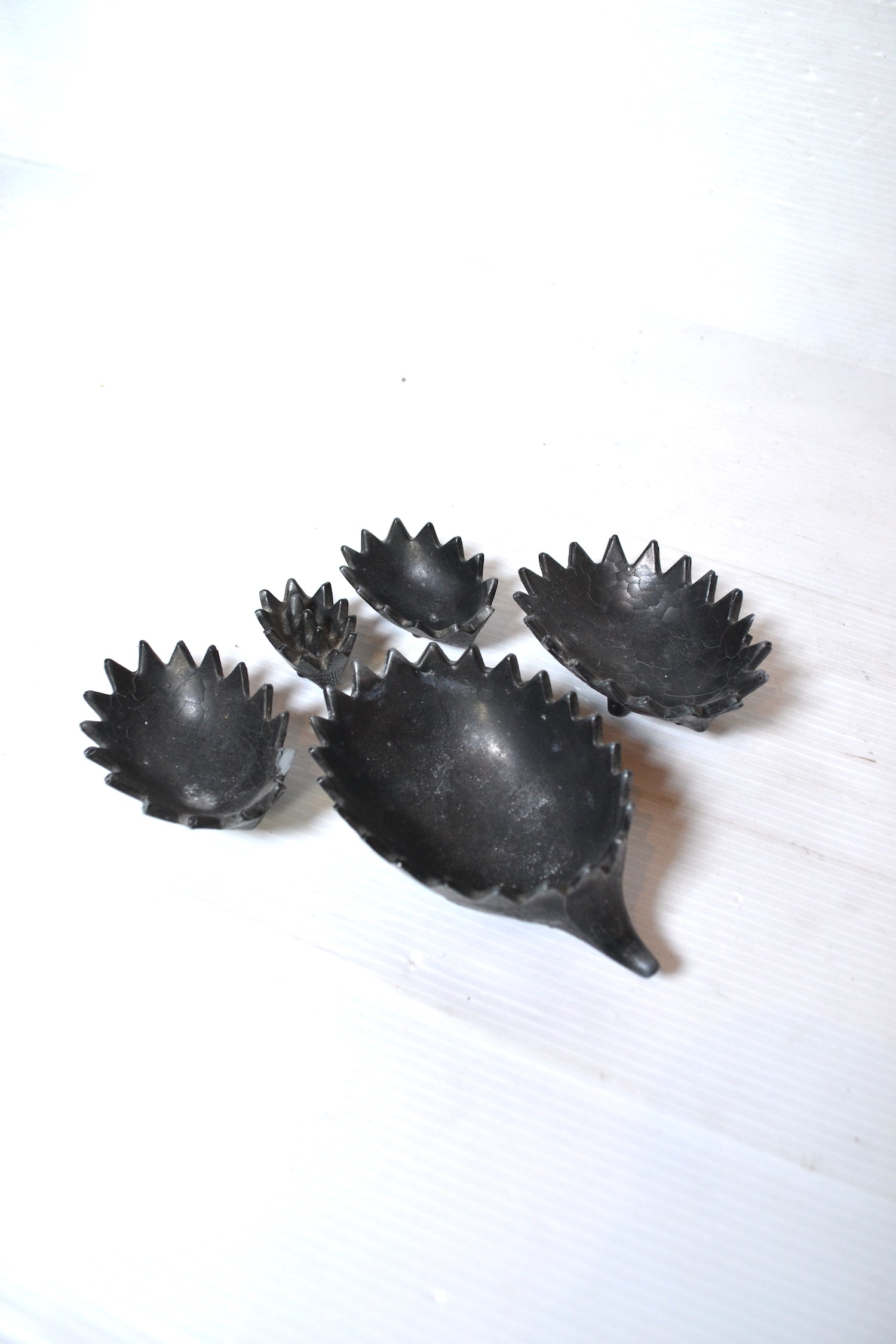 Très joli cendrier vintage gigogne constitué de cinq hérissons dans l'esprit de Walter Bosse