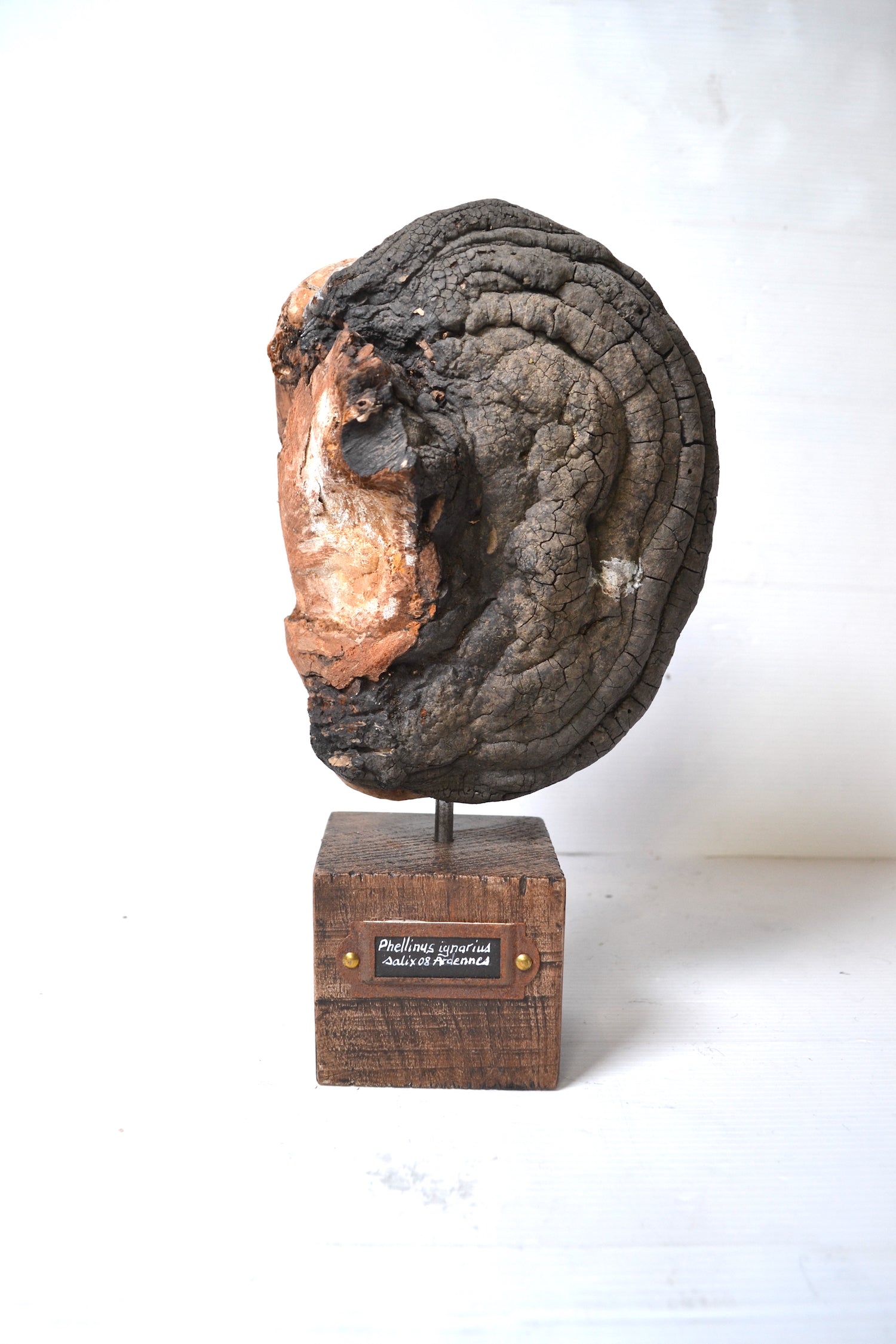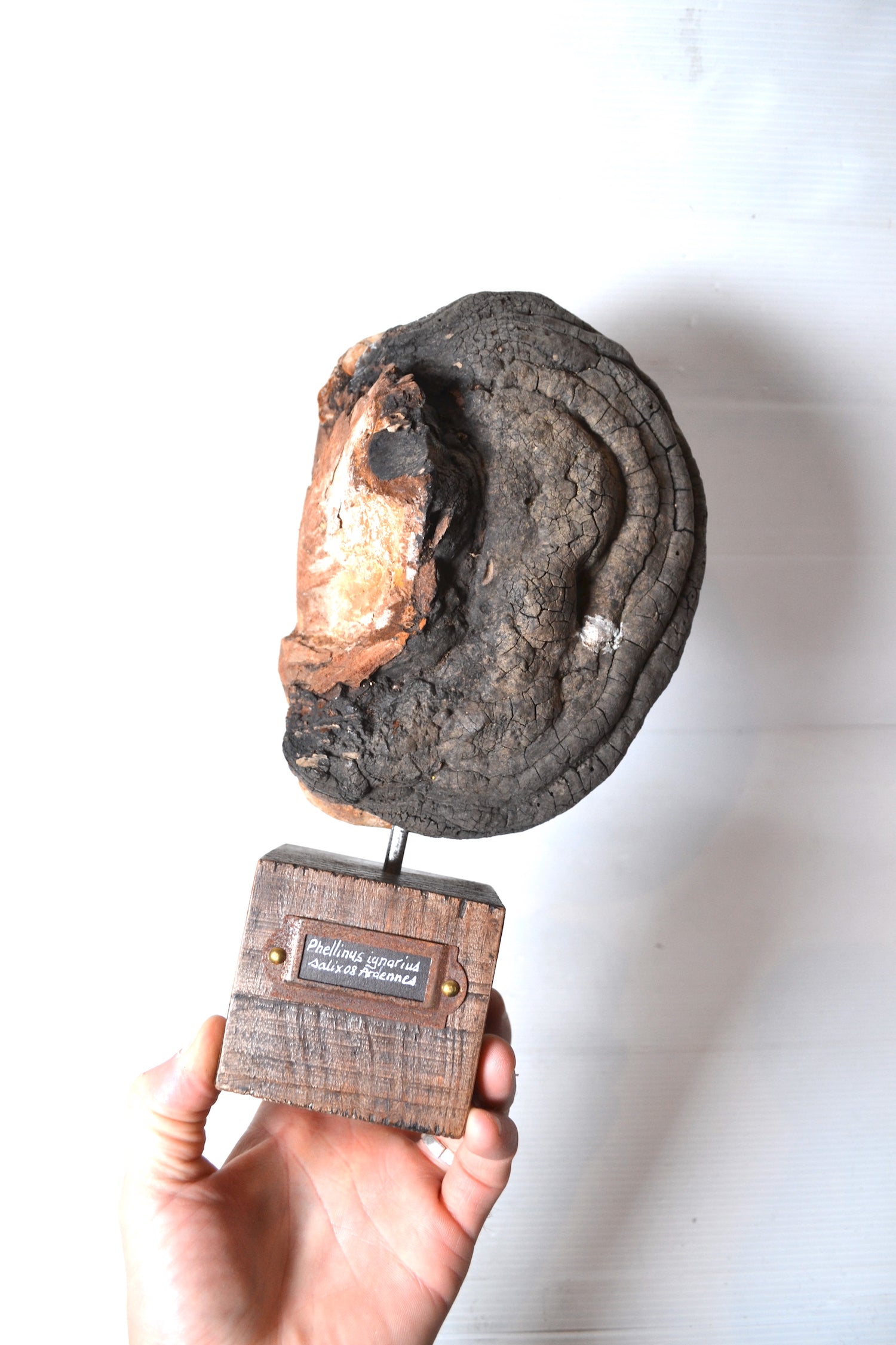 Ce superbe champignon véritable placé de manière élégante sur socle en bois est une véritable pépite naturelle. Une sculpture offerte par la nature et mise en évidence par la main de l'Homme qui prendra tout naturellement place dans un intérieur chaleureux appréciant la nature. On positionnera ainsi ce superbe champignon sur un ancien buffet parisien en bois en association avec des tabourets tripodes, de véritables peaux de mouton, du mobilier en rotin ou des éléments en pierre.