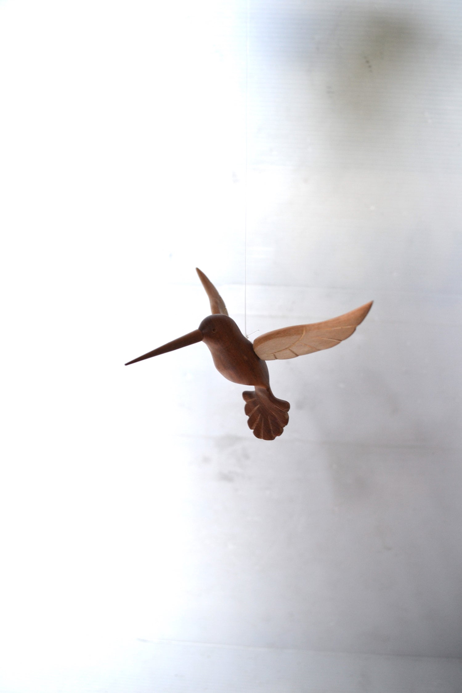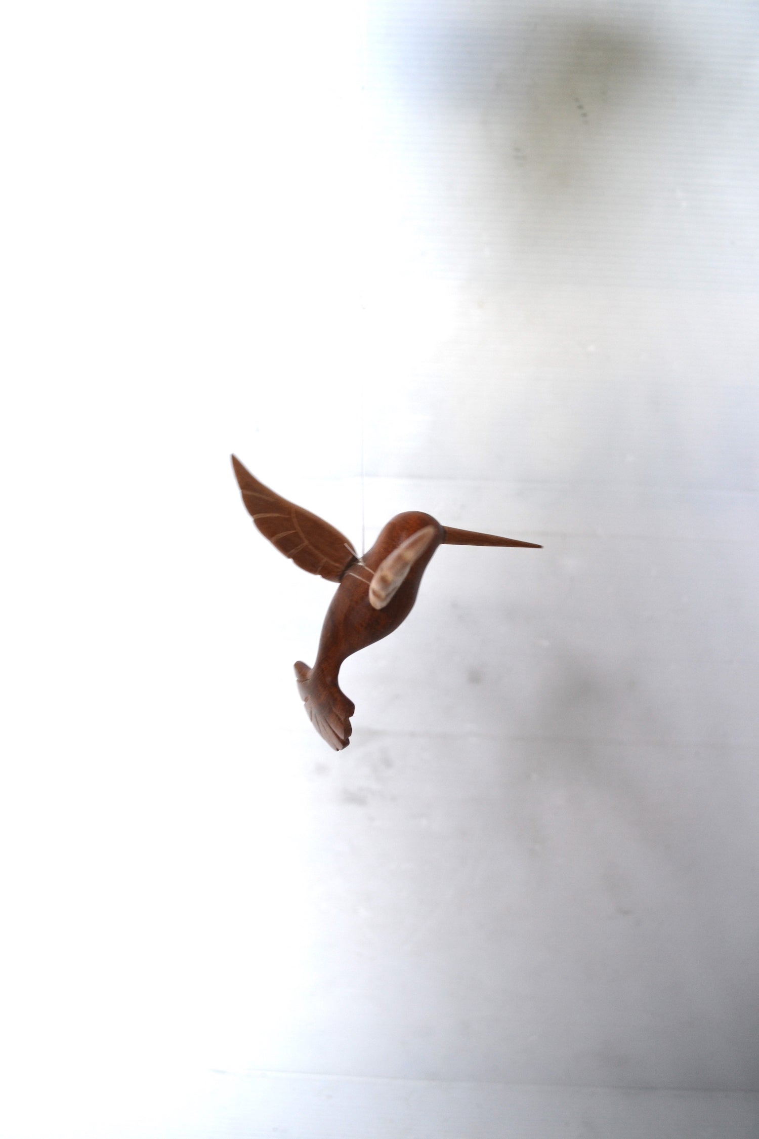Ce superbe colibris en bois sculpté est un objet plein de charme et de poésie finement sculpté. Équipé d'une ficelle invisible on dirait qu'il est suspendu dans les airs. Un très bel objet artisanal à suspendre dans une véranda, une cuisine ou une chambre d'enfant !