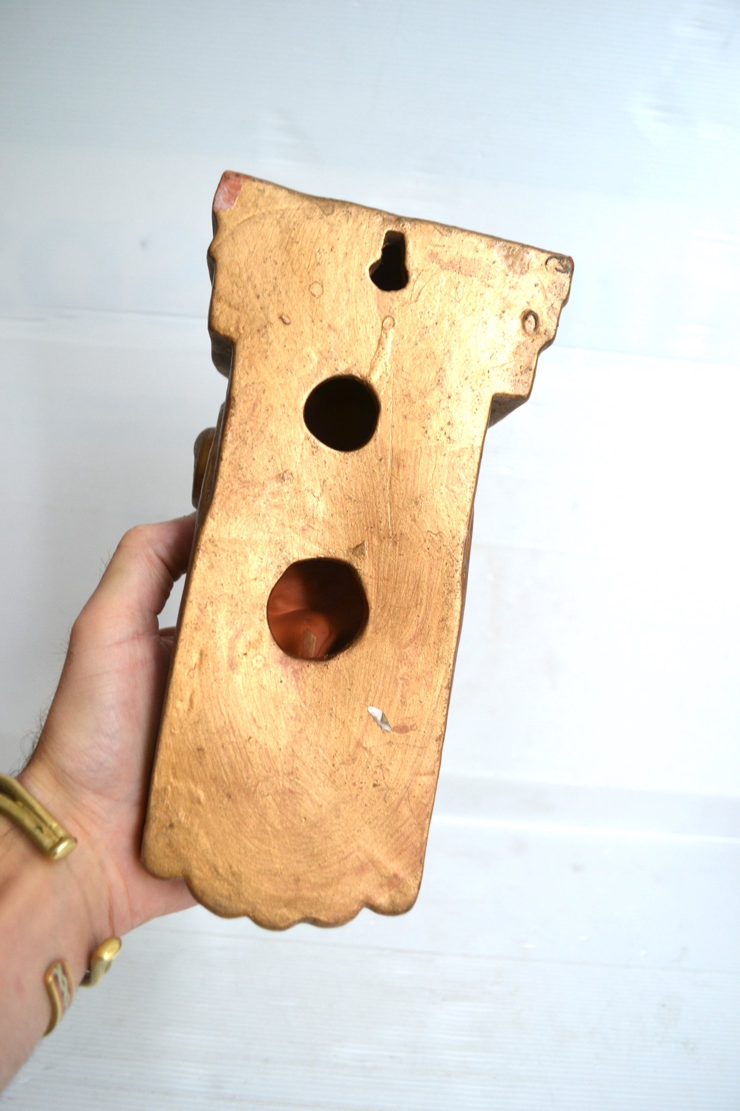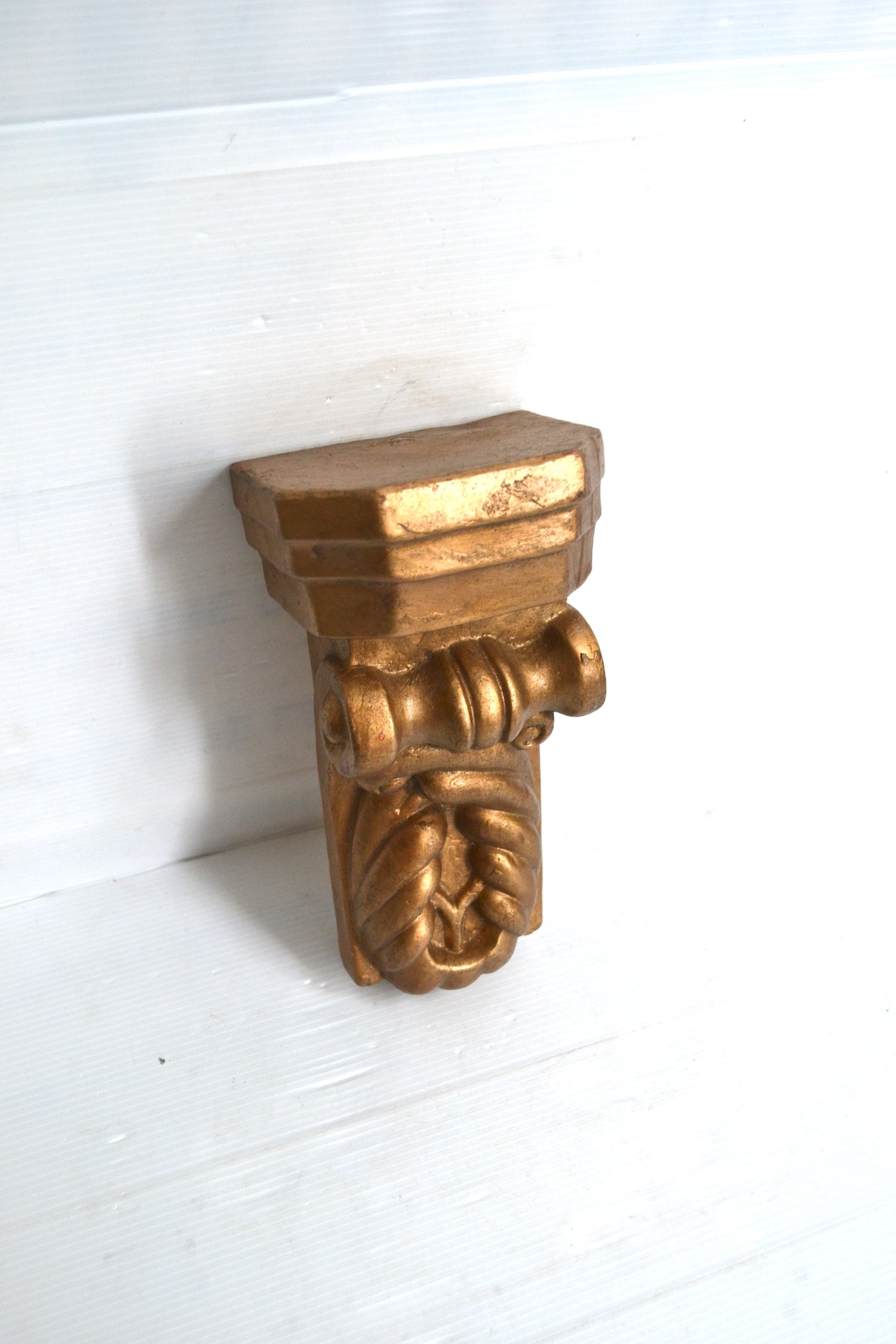 Cette superbe étagère dorée est une console murale baroque. Elle est équipée de trous à l'arrière pour pouvoir être suspendue.
