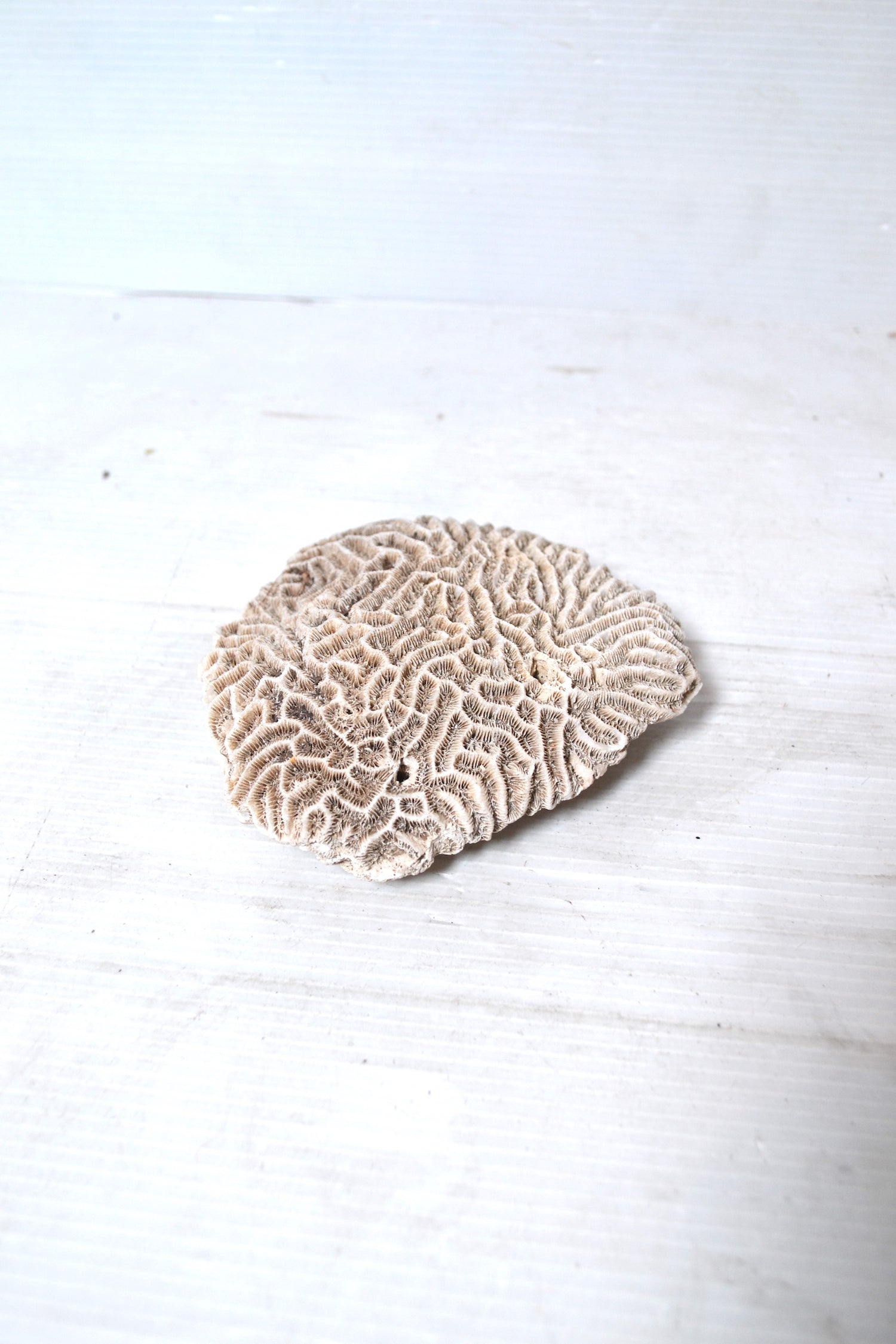 Cet joli corail de forme circulaire est un objet naturellement graphique. Sa surface est recouverte de jolis motifs géométriques.