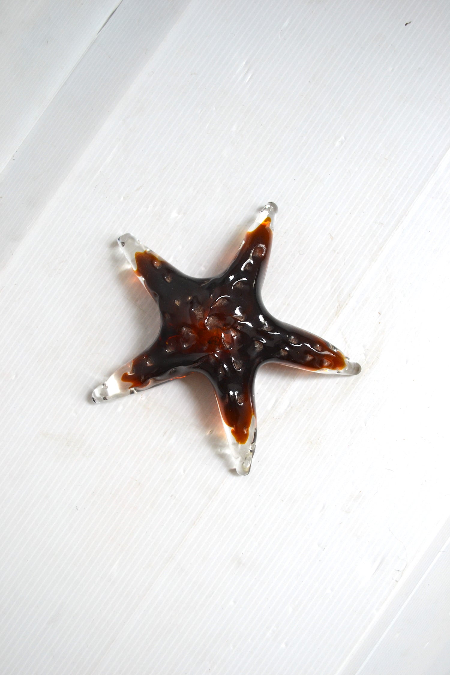 Cette superbe étoile de mer en verre de Murano est un objet finement travaillé. Une sculpture en verre pleine d'élégance au joli coloris cognac qui s'utilisera comme presse papier sur un bureau de travail, se positionnera dans une collection d'objets en verre de Murano ou s'offrira comme cadeau original.