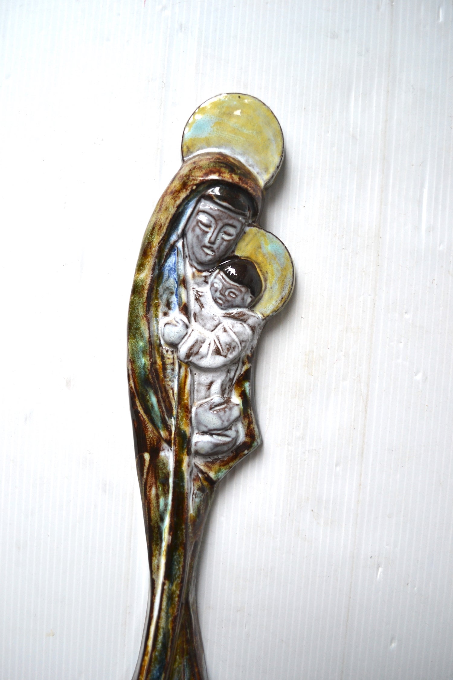 mots clefs : #vierge #viergecéramique #viergeàlenfant #bondieuserie #ceramiqueemaillée