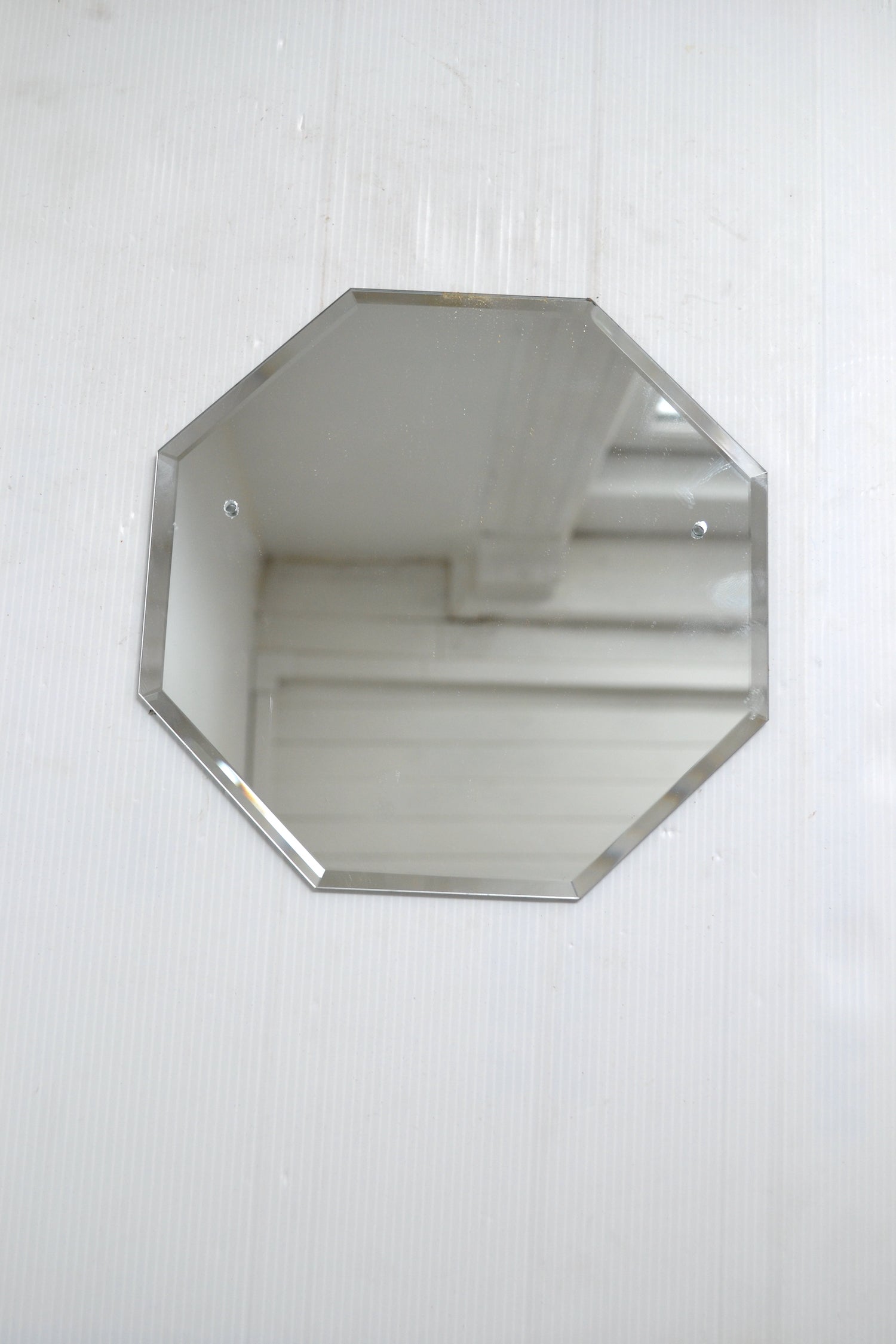 Très joli miroir vintage à la glace biseauté de forme octogonale