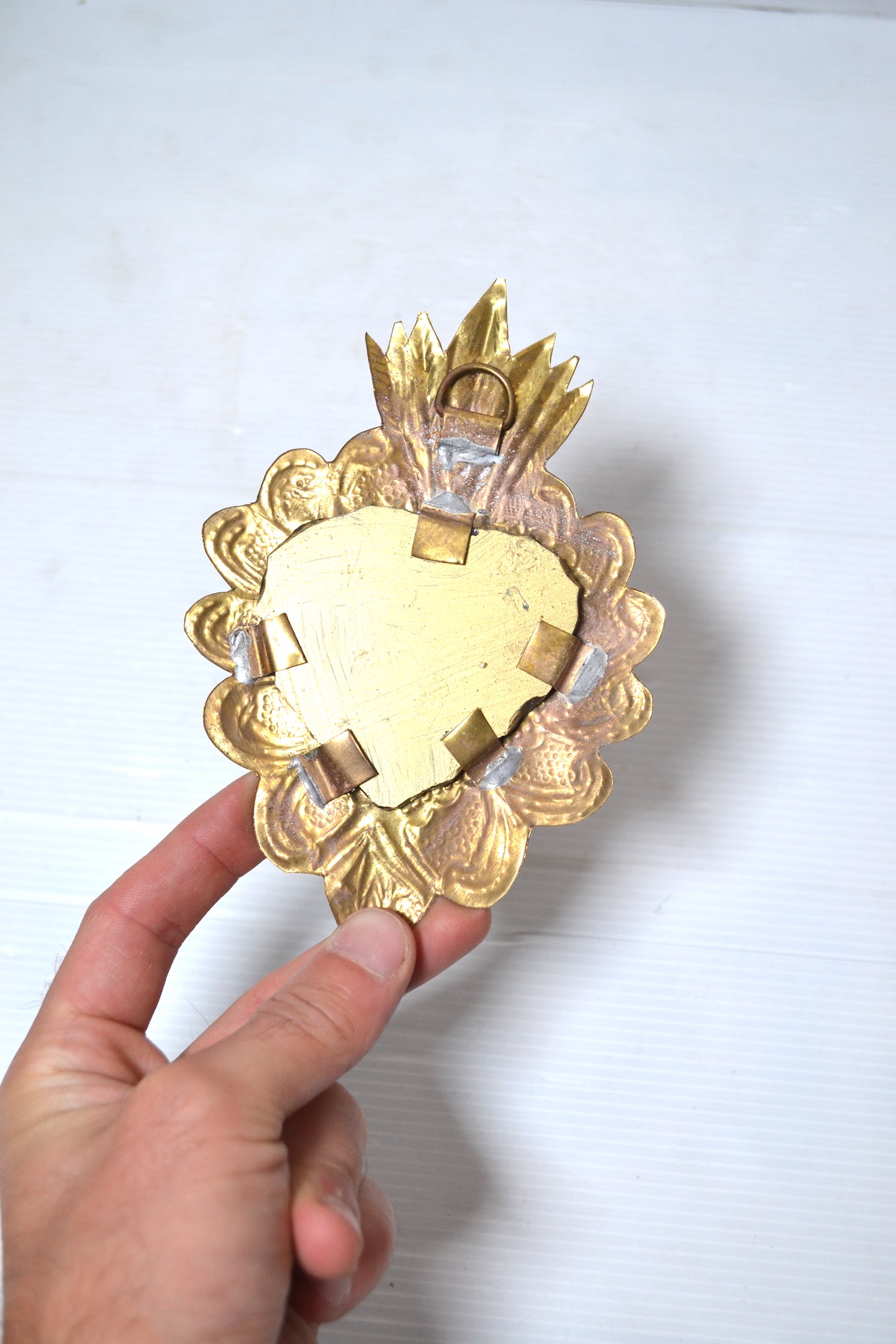 Iconique et très graphique ce superbe miroir en forme de cœur flamboyant ex-voto est un bel objet décoratif doré et lumineux. On le positionnera seul ou en accumulation dans un mur de miroirs dorés !