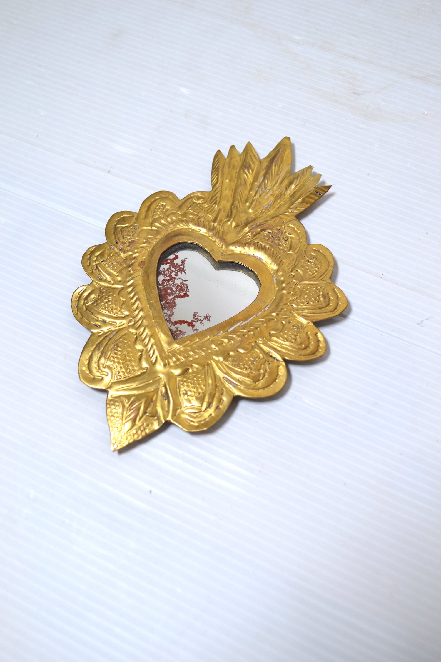 Joli miroir de fabrication contemporaine en forme de cœur flamboyant Ex-voto
