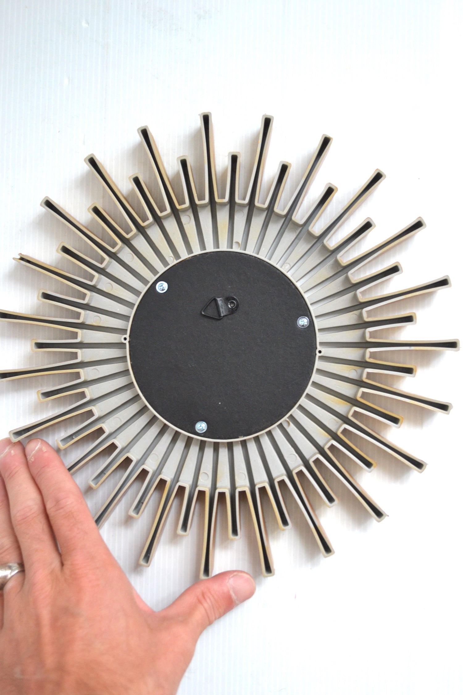 Très joli miroir soleil en plastique de fabrication contemporaine au verre bombé