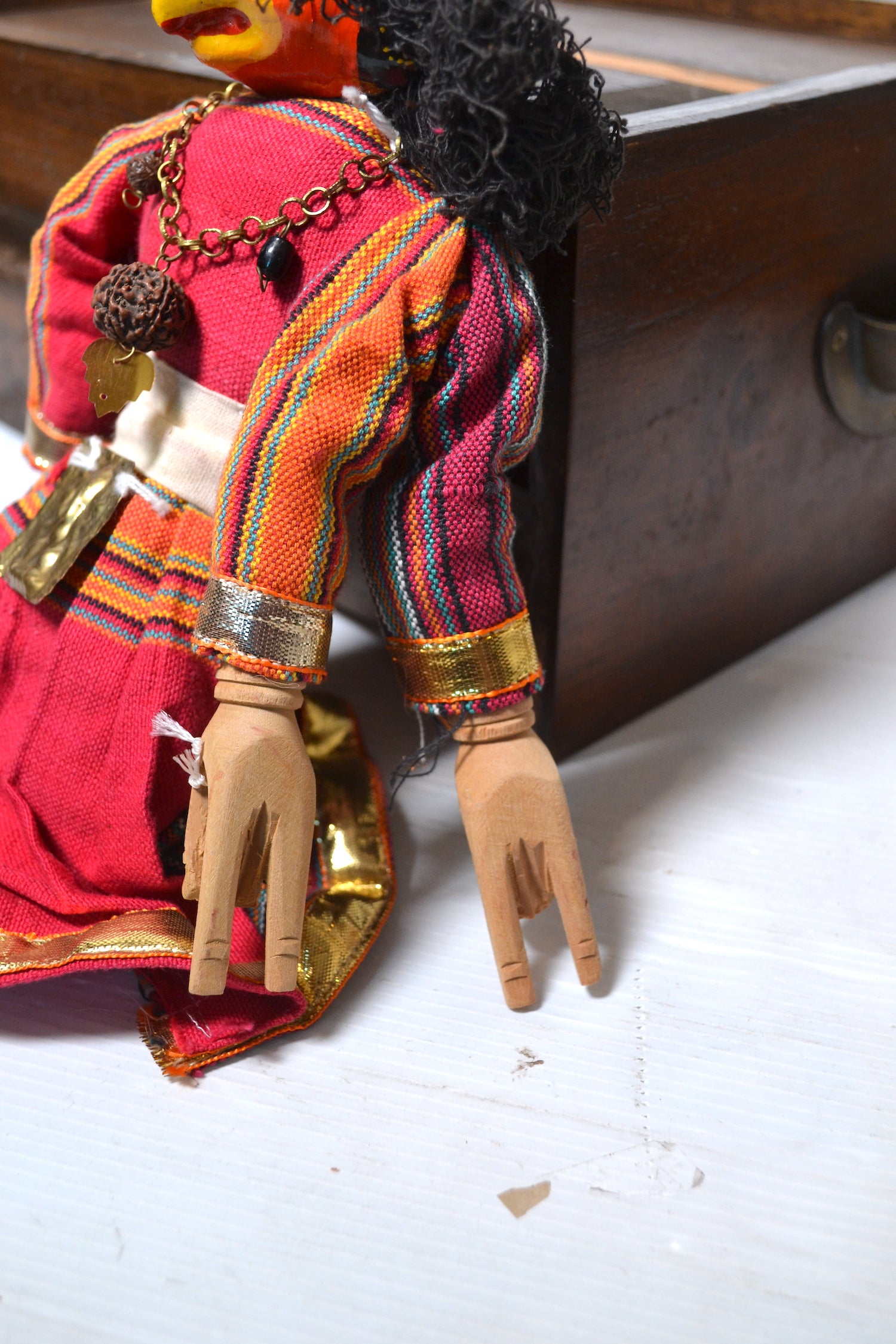 Ce joli pantin se démarque tout naturellement par ses deux visages ainsi que par ses quatre bras en bois. Un objet empreint d'une belle poésie idéal dans une décoration de chambre d'enfant mais qu'on pourra également positionner dans une collection de pantins, de marionnettes et de poupées en bois.