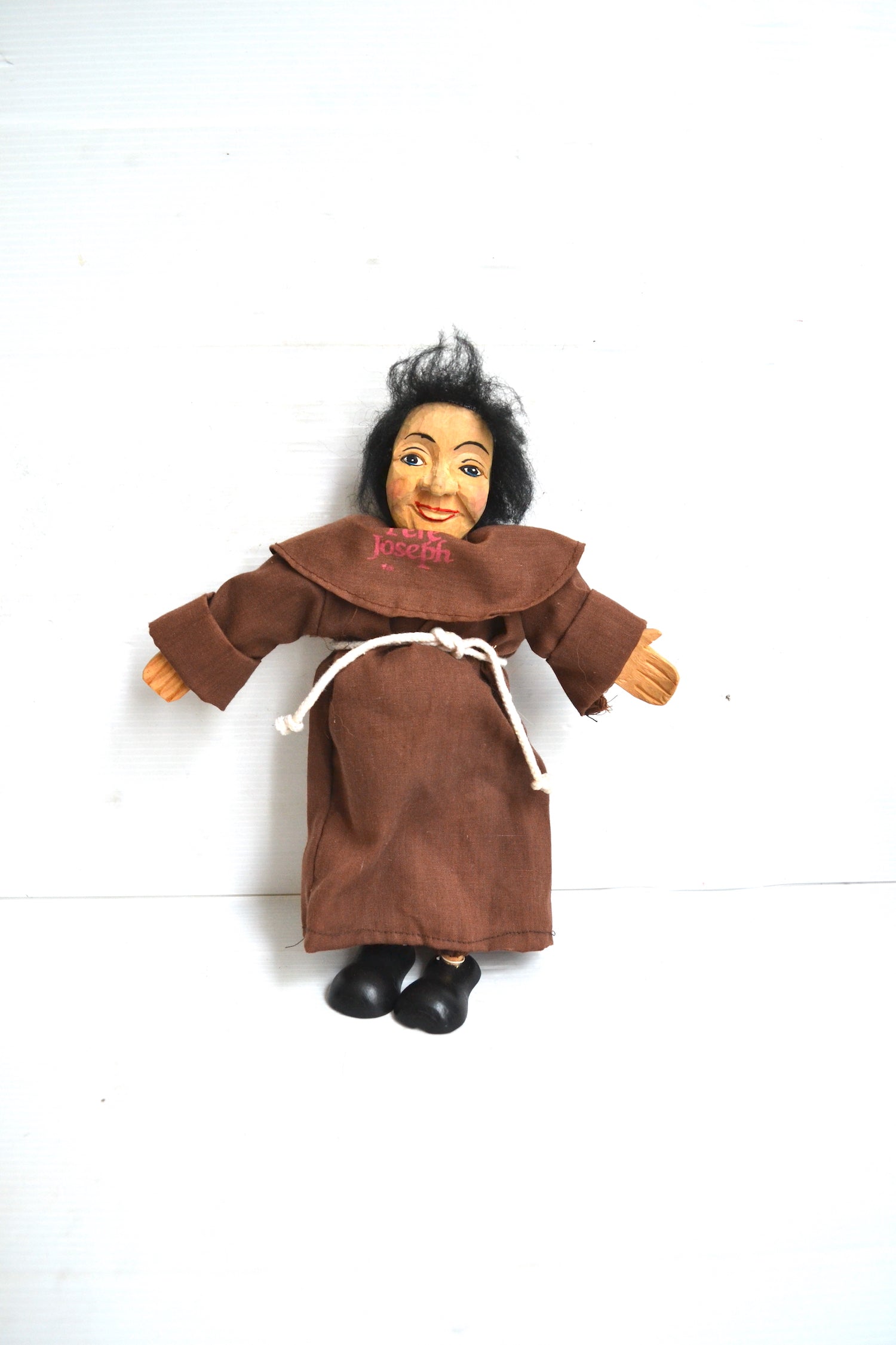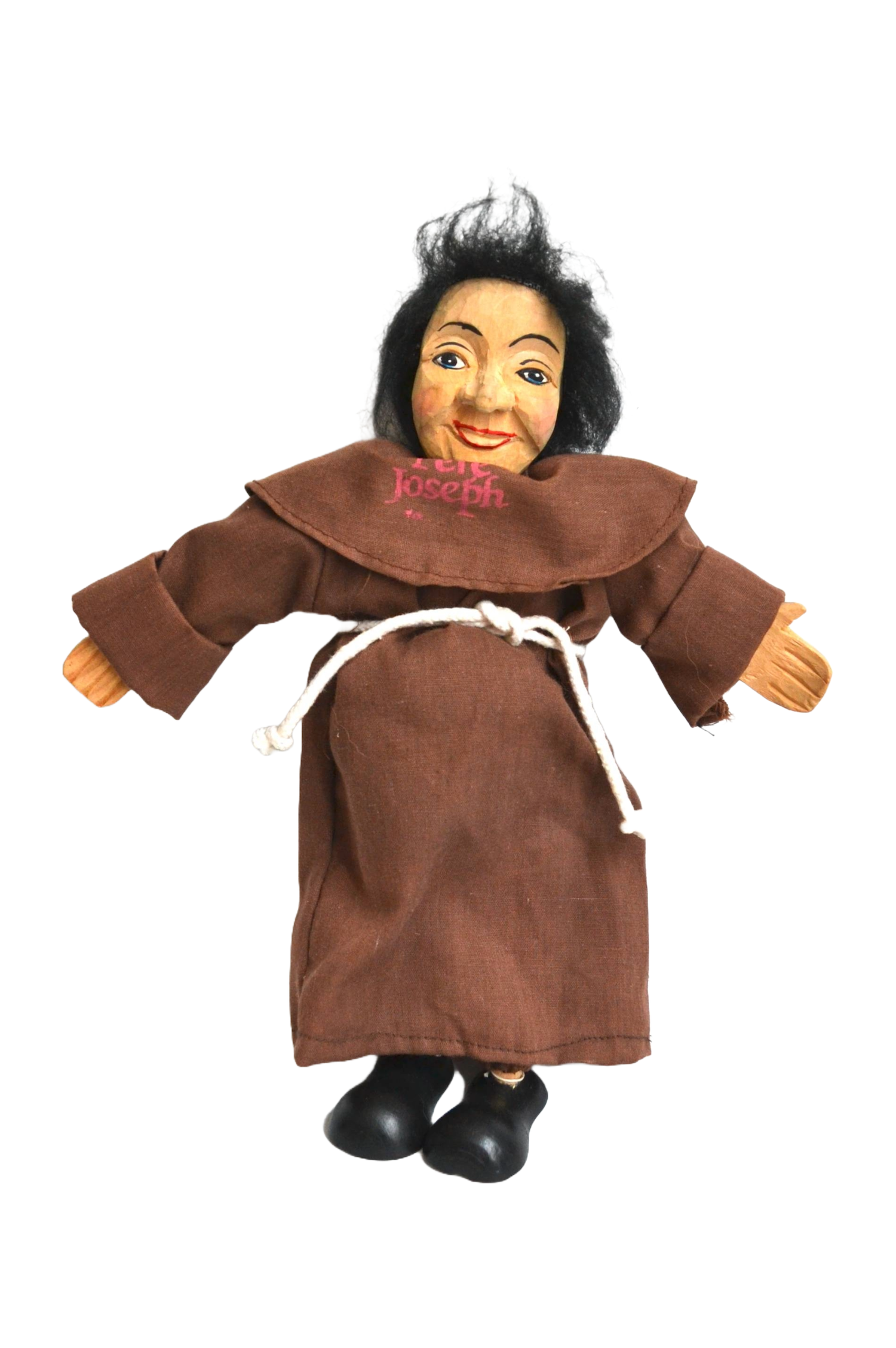 Très joli pantin Père Joseph en bois sculpté et tissu