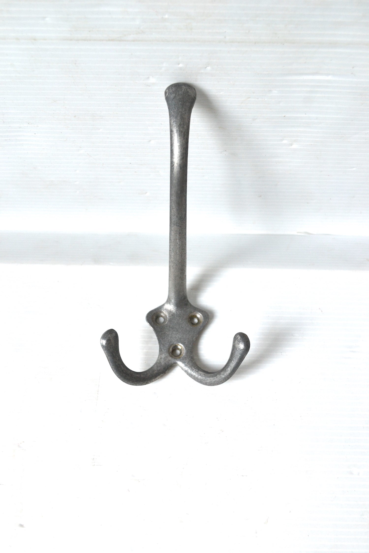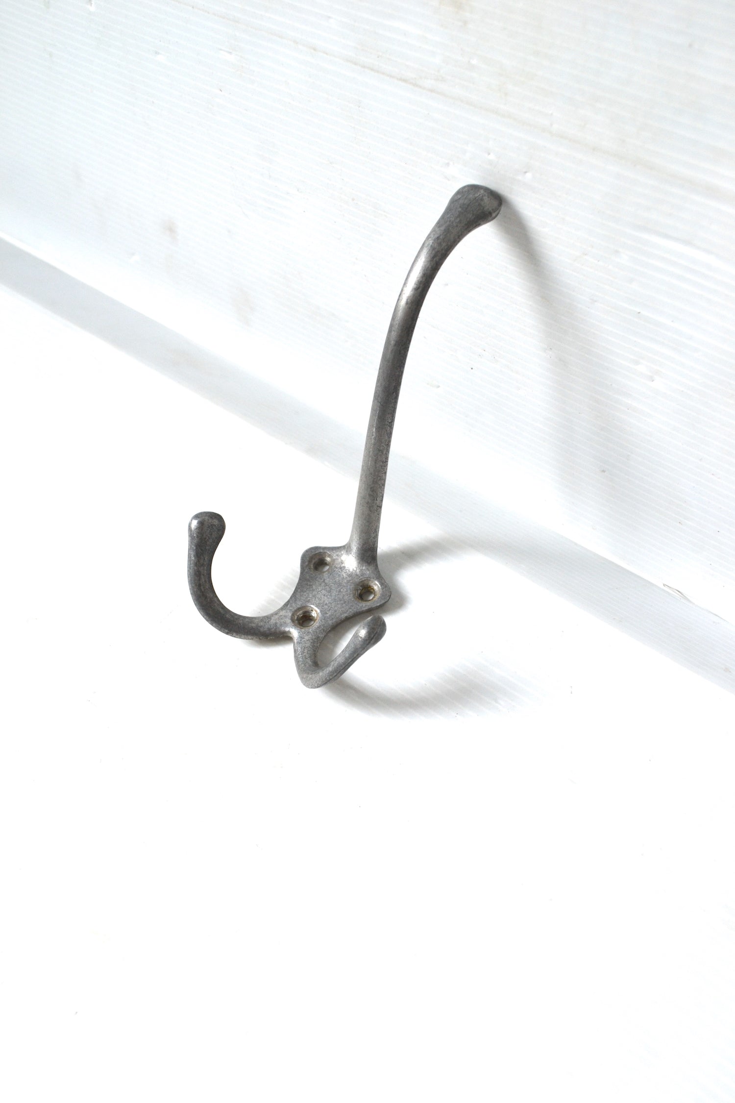 Cette jolie patère rétro en aluminium argenté est un accessoire de rangement design, esthétique et pratique constitué de trois crochets.