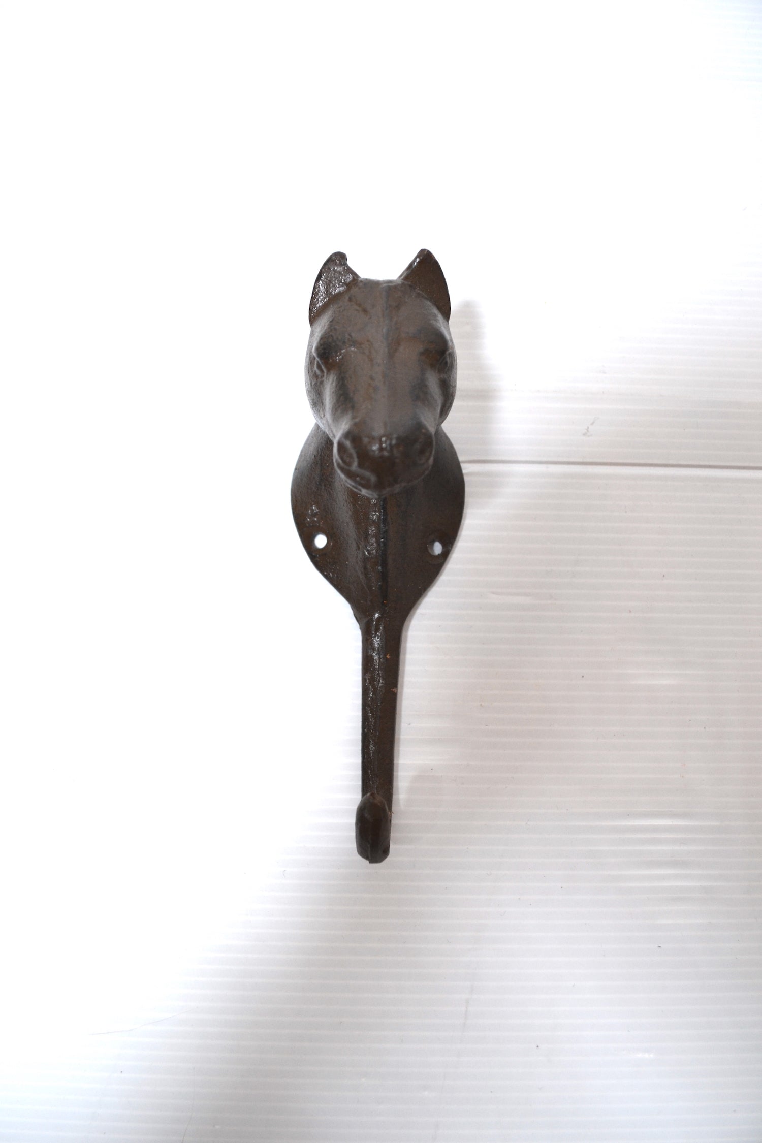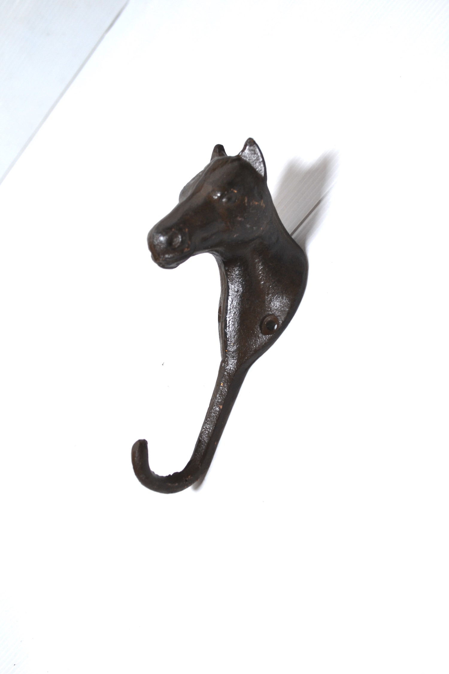 Ce superbe crochet en fonte se démarque par sa matière qualitative et robuste comme par son joli design en forme de tête de cheval. On la suspendra à l'aide de ses deux trous à l'arrière
