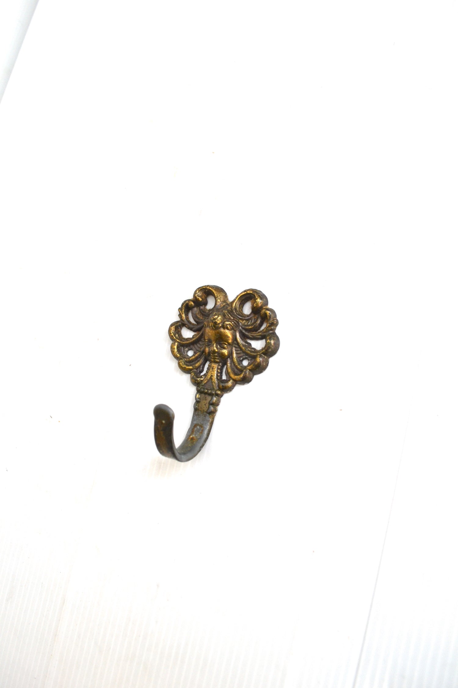 Apportez une belle note de cachet à votre décoration d'intérieur grâce à cette superbe patère vintage dorée en forme de visage de chérubin finement dessiné.