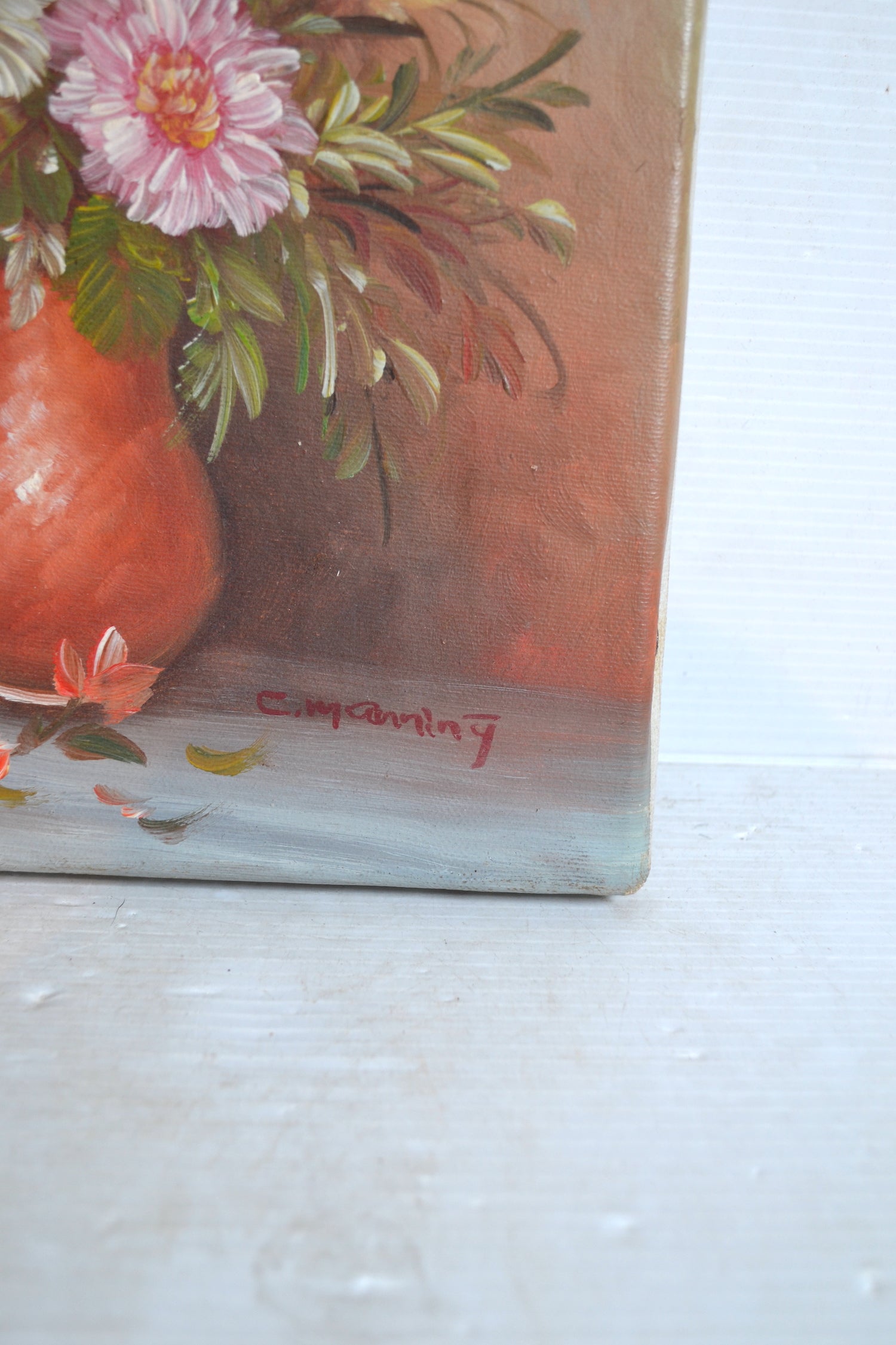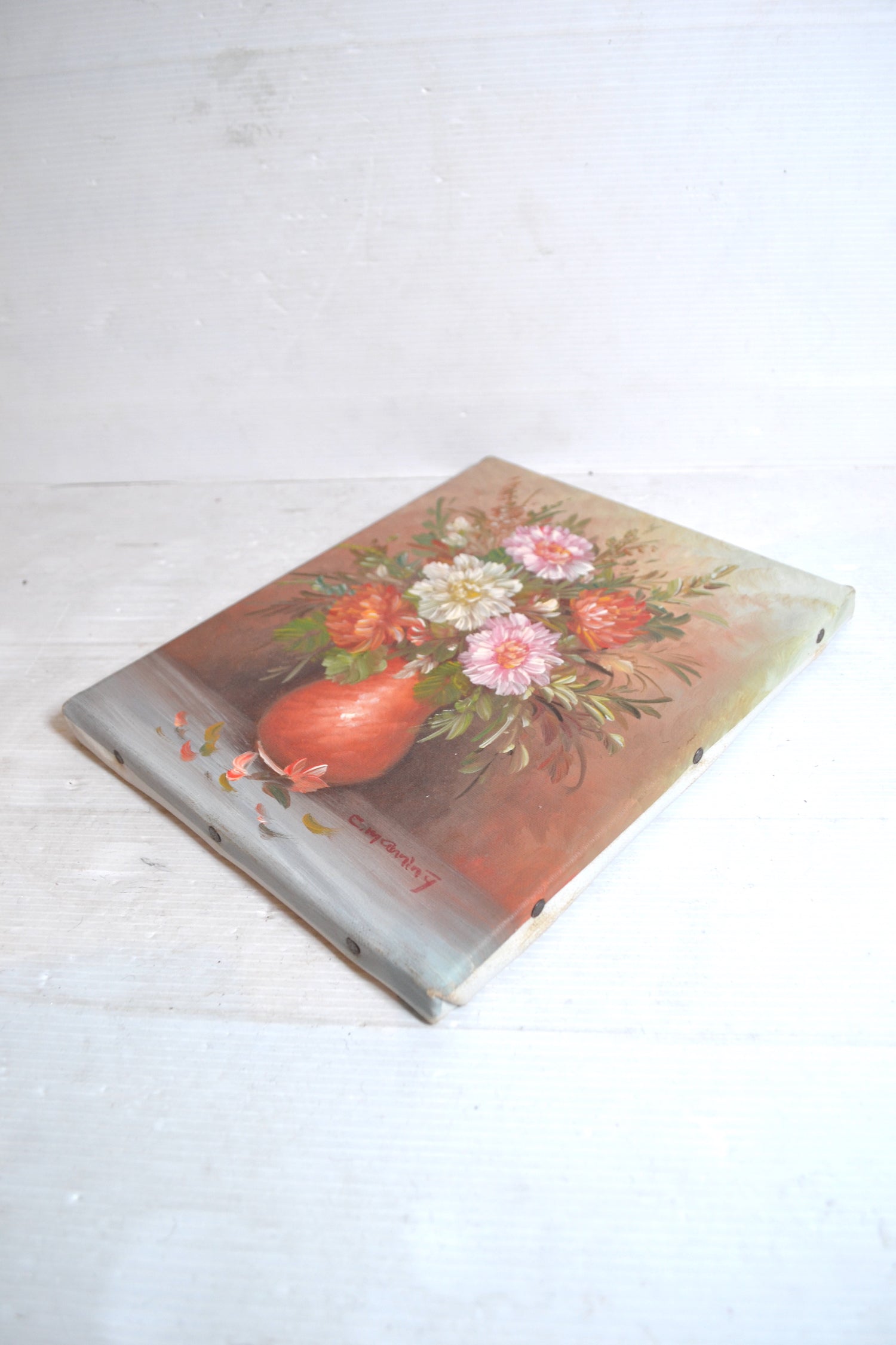 Élégante peinture sous forme de bouquet fleuri à poser en butée sur un buffet ou à encadrer pour la suspendre. Elle apportera une jolie note vintage à un salon comme à une cuisine !