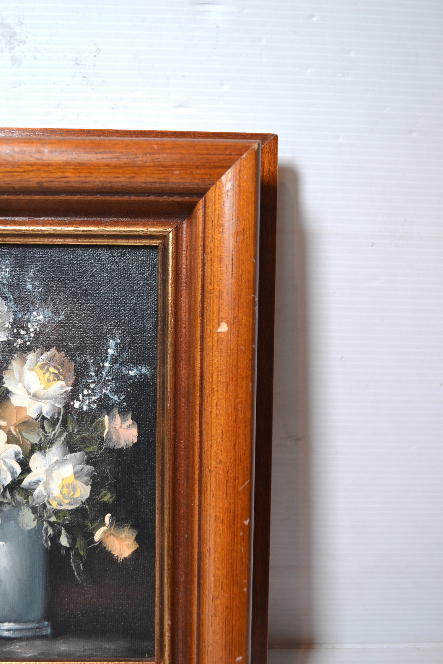 Très joli petit tableau à l'huile et à l'acrylique représentant un joli bouquet de fleurs blanches. Un joli tableau vintage qu'on suspendra aussi bien en isolé que dans une belle accumulation murale de tableaux et de peintures anciennes !