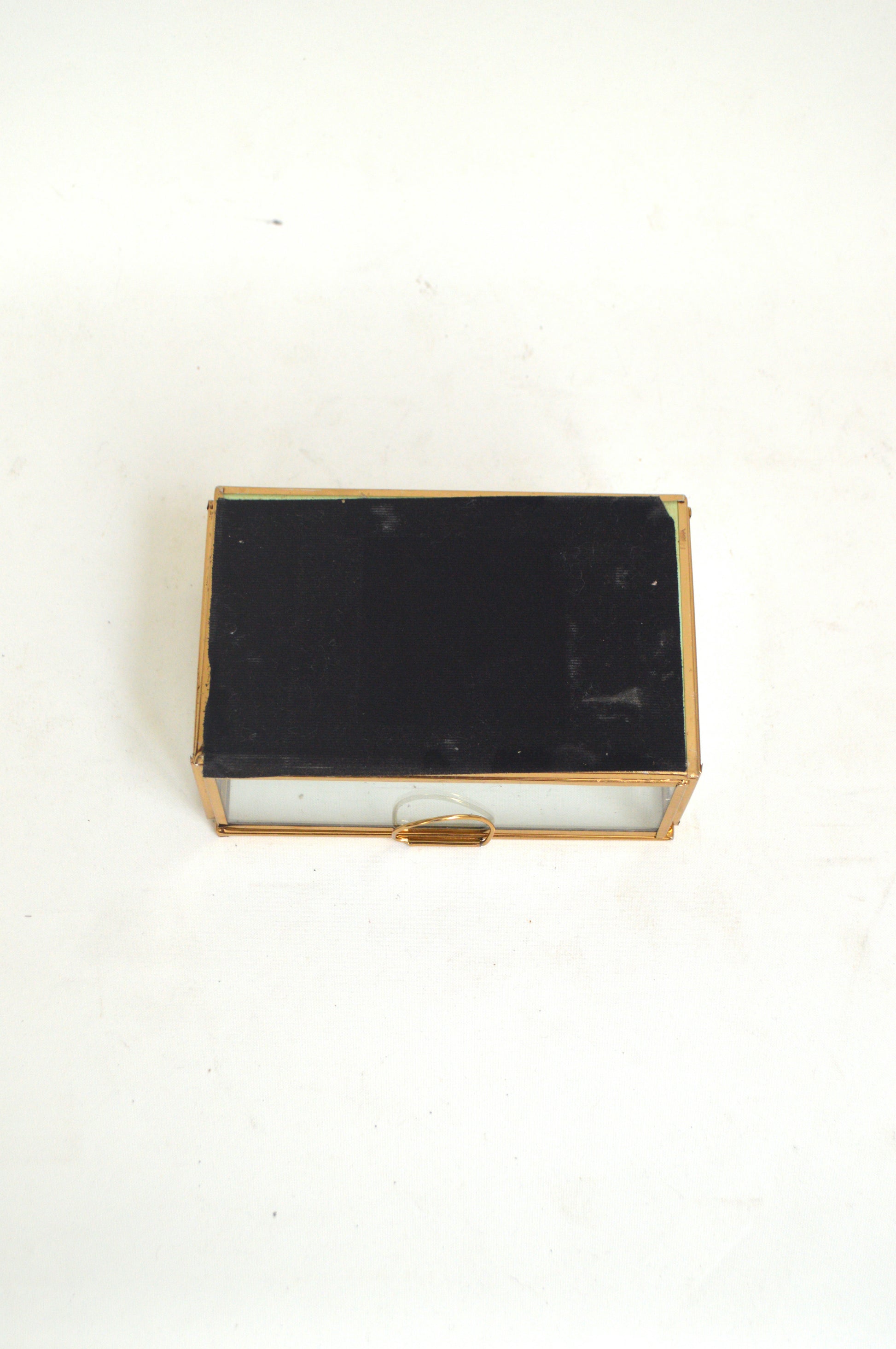 Cette boîte à bijoux de forme rectangulaire se compose de cloisons en métal doré, de parois transparentes et d'un fond en miroir. On l'utilisera au quotidien pour conserver bagues, bracelets et bijoux. Elle se placera avec élégance dans une salle de bain ou sur une table de chevet.
