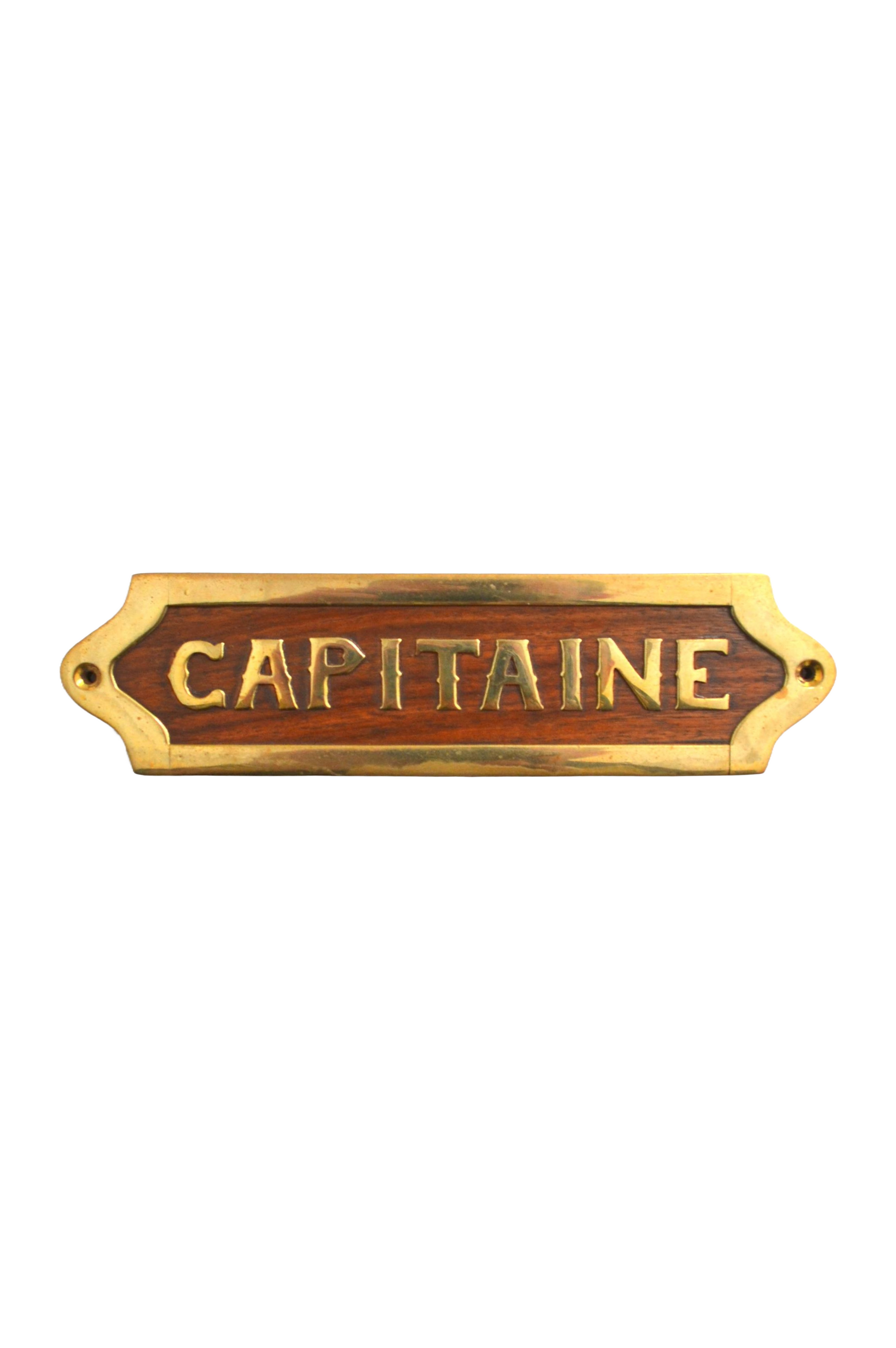 Très jolie plaque indicative décorative en bois et laiton avec inscription centrale "Capitaine"