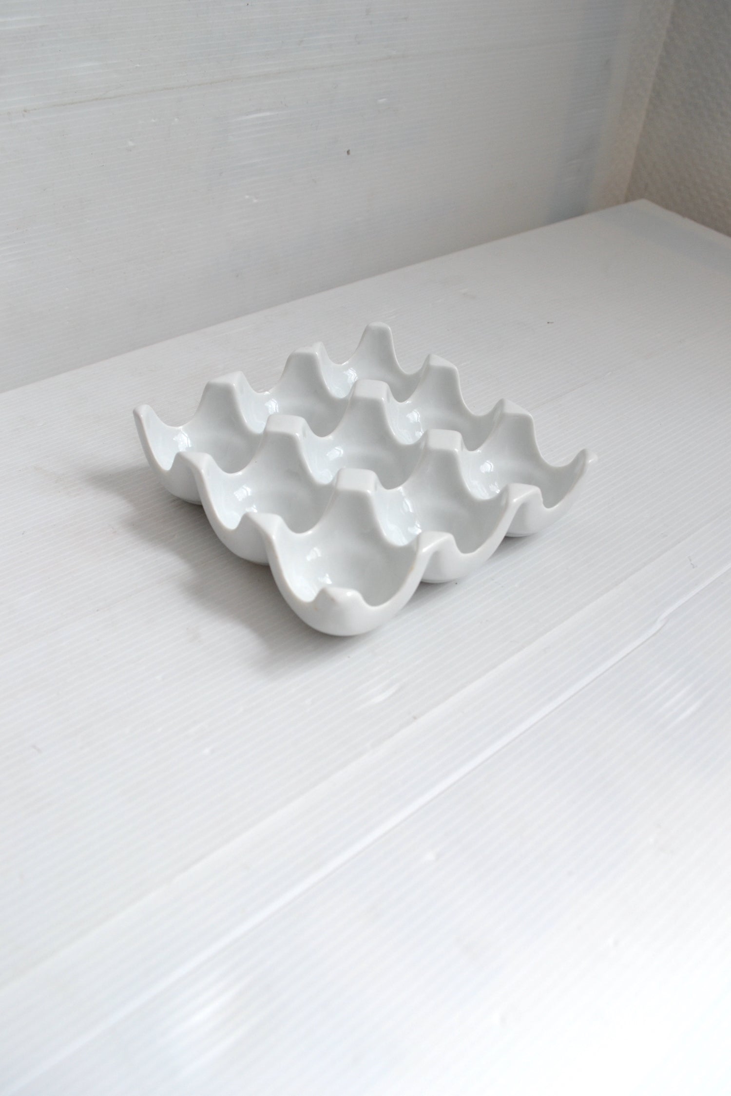 Cet élégant ustensile de cuisine est un plateau à oeufs. Il se distingue par ses formes simples et épurées