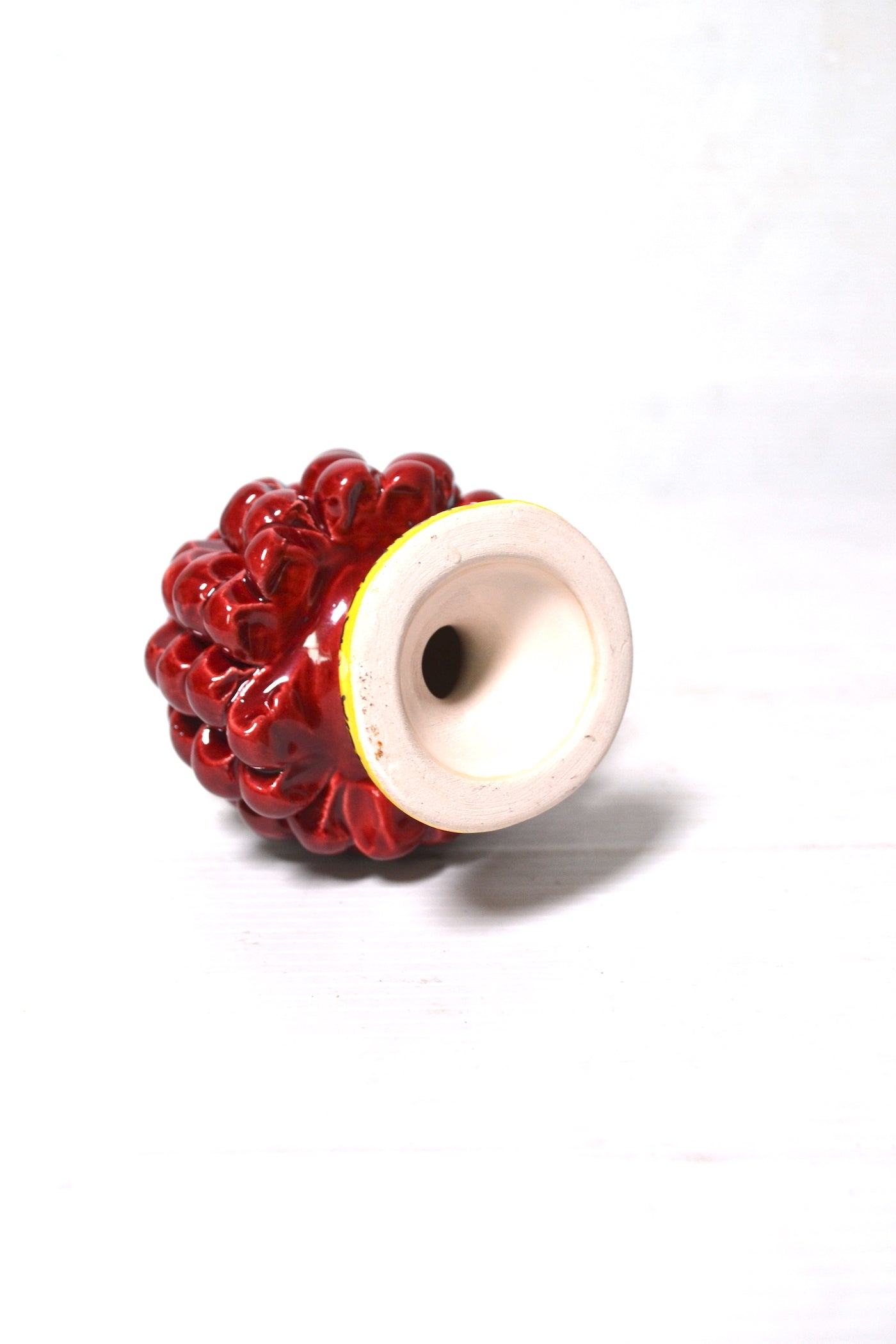 Cette jolie pomme de pin décorative est un objet graphique et lumineux qui se démarque par sa belle couleur bordeaux et sa surface brillante. Un objet décoratif en céramique de fabrication artisanale italienne esthétique et poétique. On l'utilisera comme objet décoratif original dans sa décoration d'intérieur ! Elle se placera sur un large meuble en bois, un buffet parisien ou un ancien établis à côté de bustes et de sculptures antiques.