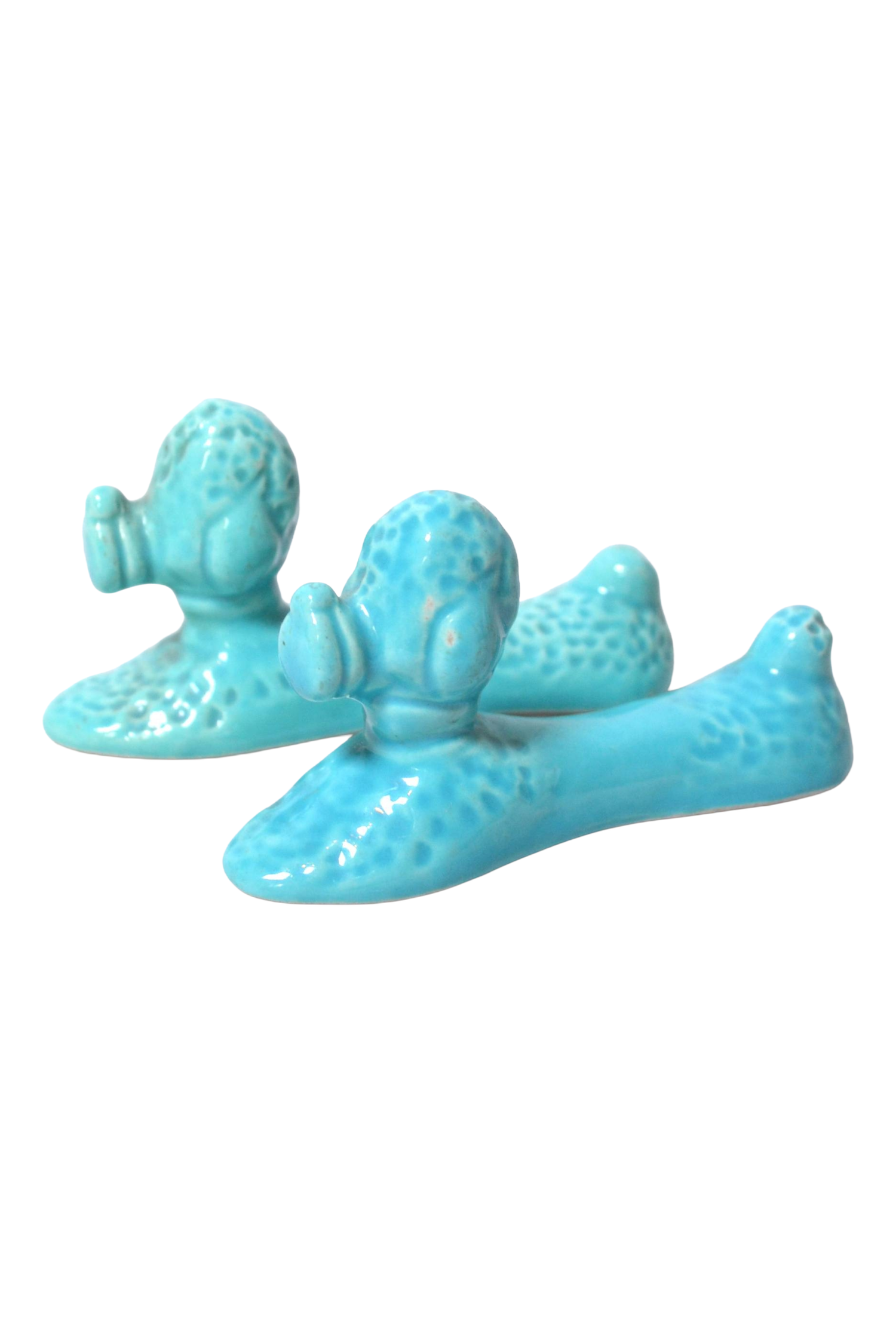 Très joli duo de porte-couteaux vintage en céramique en forme de caniches