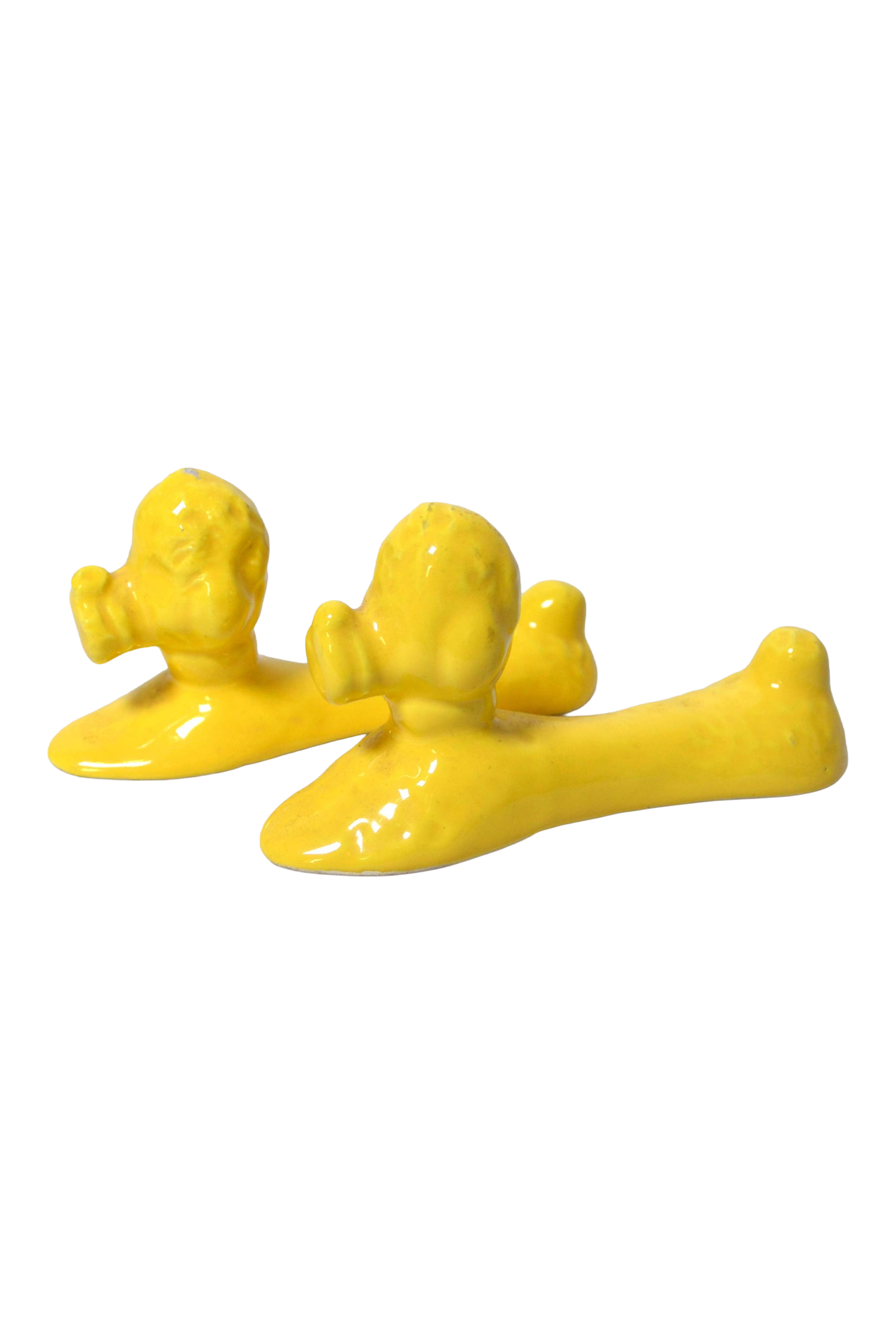 Très joli duo de porte-couteaux vintage en céramique en forme de caniches