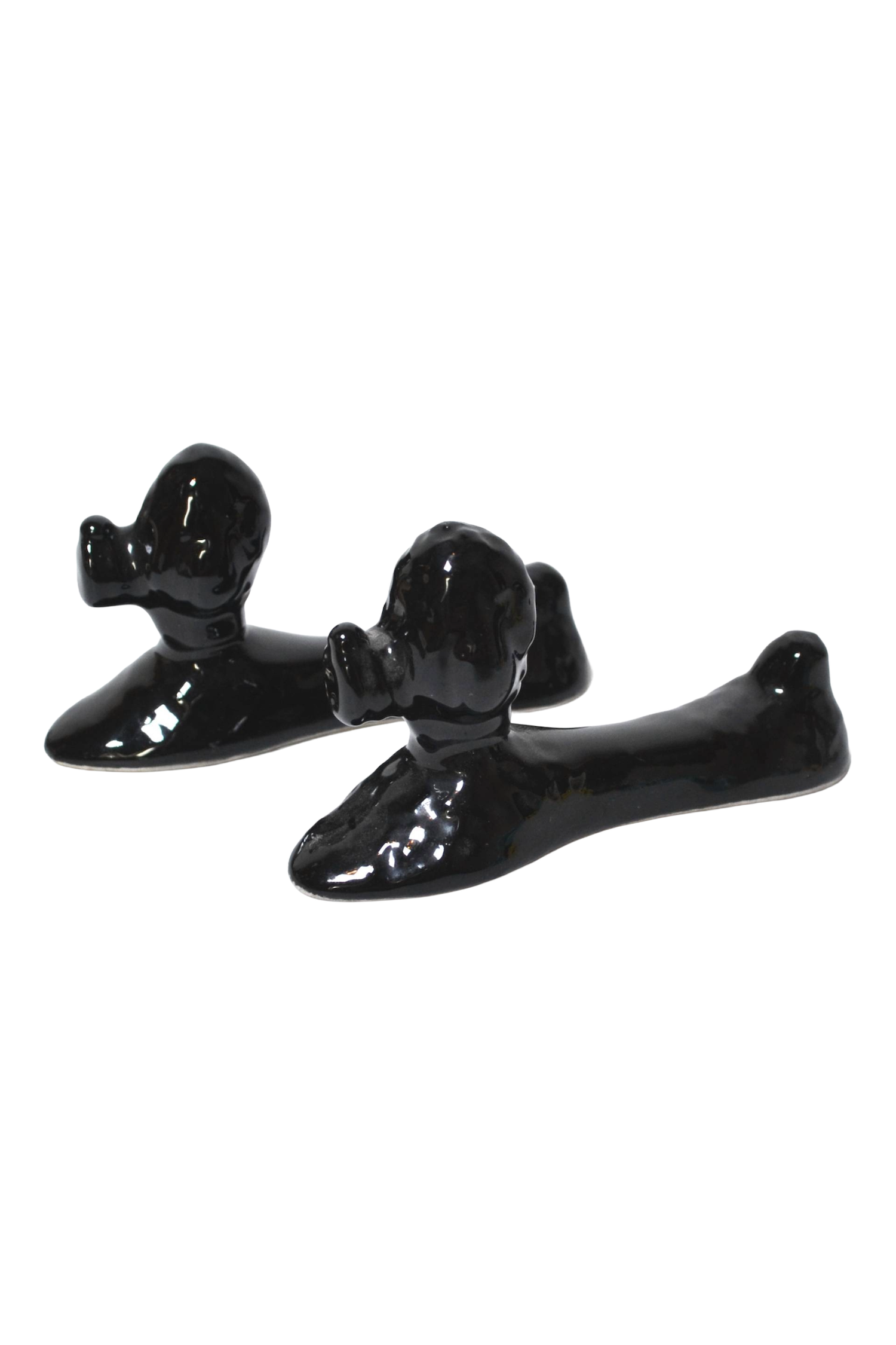 Très joli duo de porte-couteaux vintage en céramique en forme de caniches